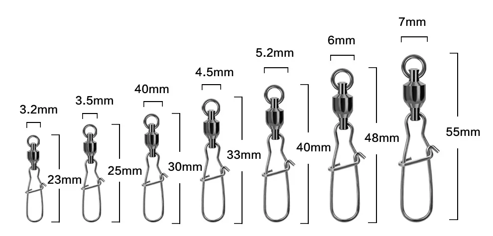 Cantidad: 50 Uds. Material de acero inoxidable sin óxido El rodamiento de bolas gira el cuerpo en el interior con 3 uds. De rodamientos de bolas Giratorios de muy buena calidad Se puede utilizar en agua salada y no se oxida