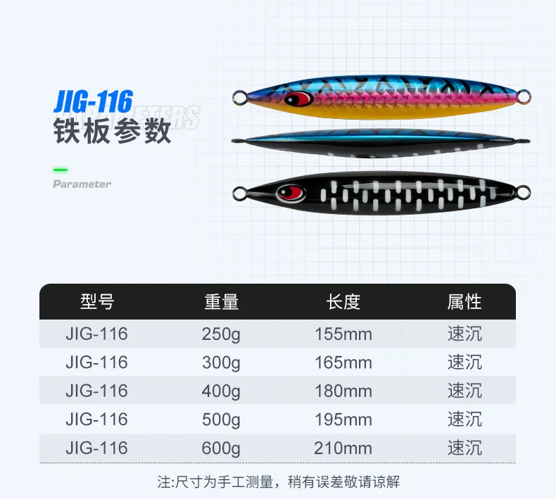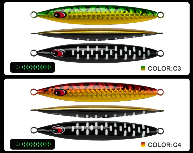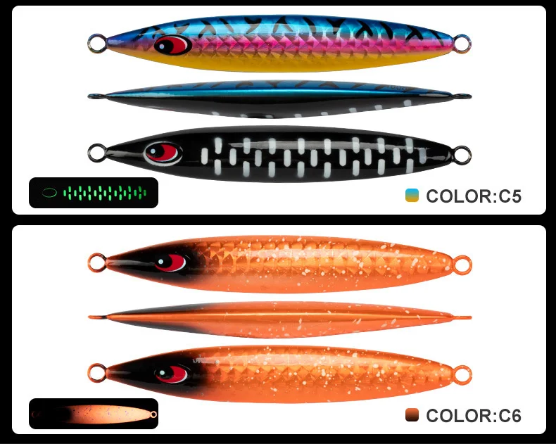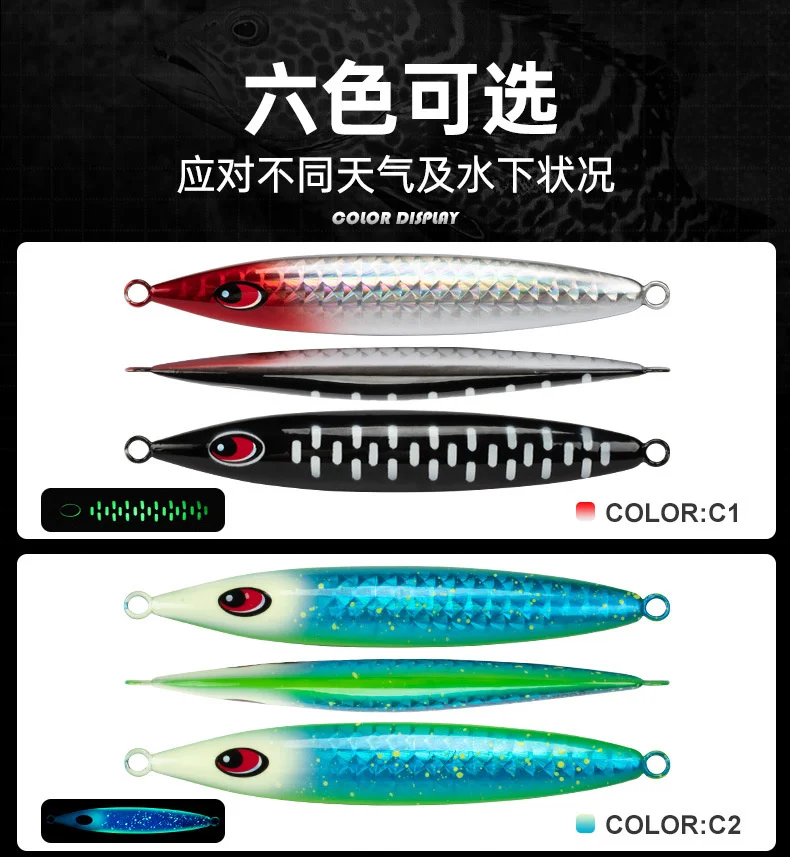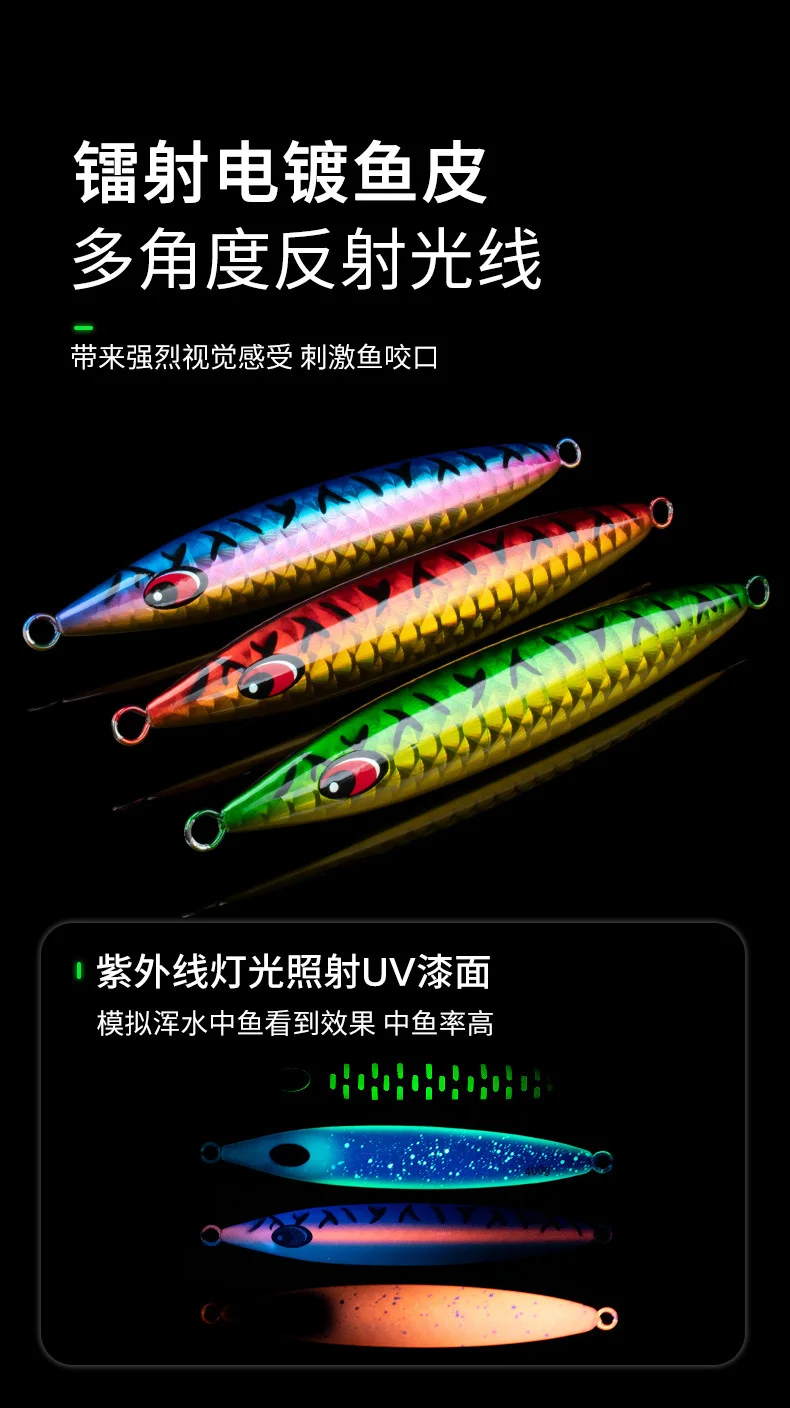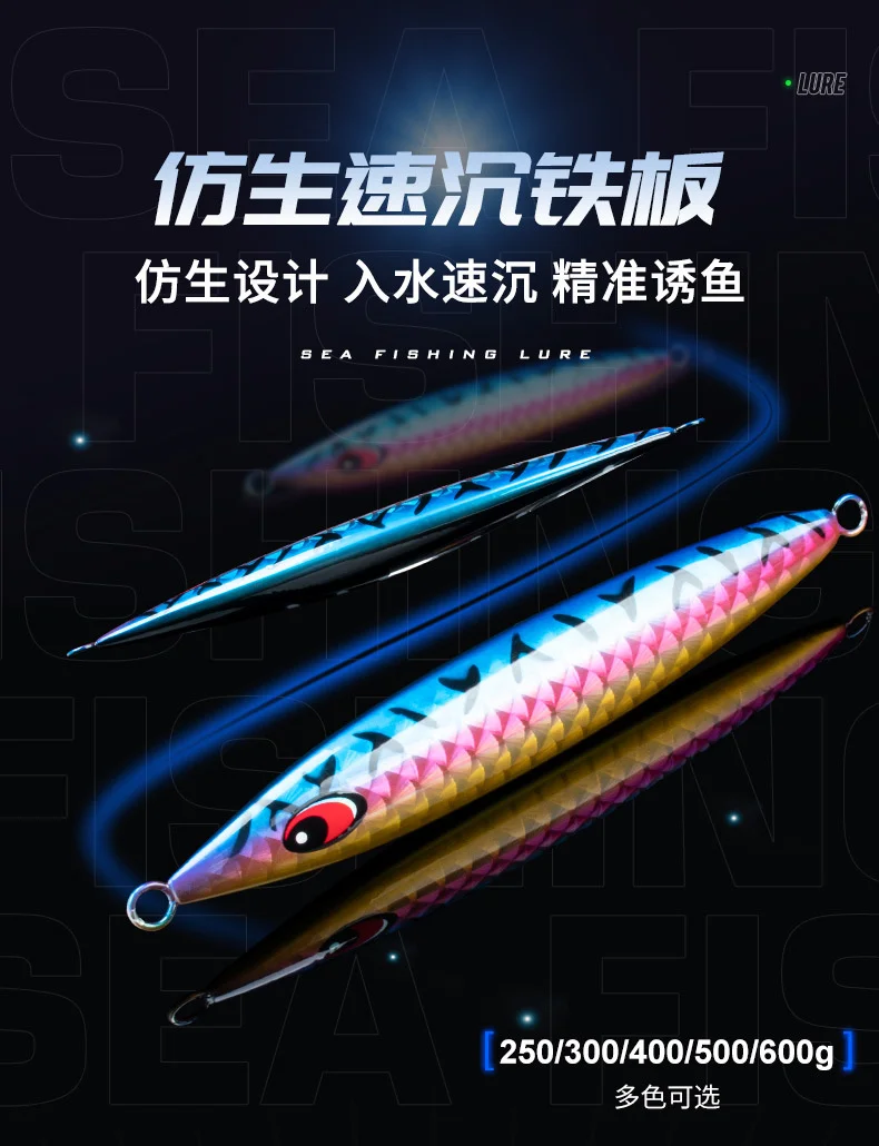 Anzuelo de pesca de gran peso, plantilla de 250g, 300g, para mar profundo, cebo de pesca lento, luz nocturna UV, placa de hierro, plomo, piedra, sello rojo