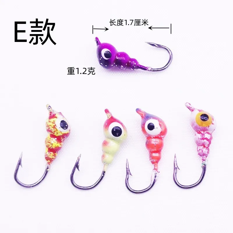 Anzuelo de pesca en hielo, Micro Mini anzuelos coloridos con cabeza de anzuelo, señuelo de raíz inferior, plantillas de pesca de invierno, lote de 10 piezas en oferta
