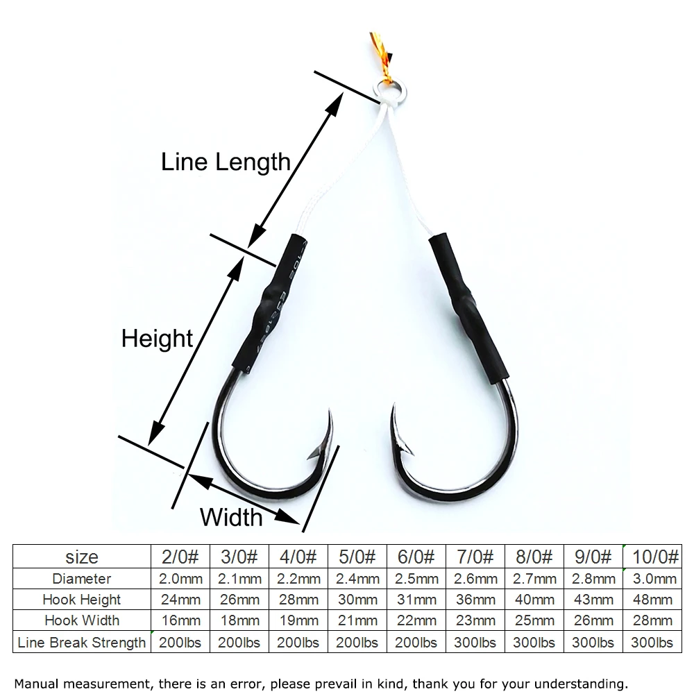 Anzuelo de pesca igging, anzuelos dobles de acero inoxidable con línea trenzada, anillo sólido, accesorios para aparejos de pesca, anzuelos de agua salada