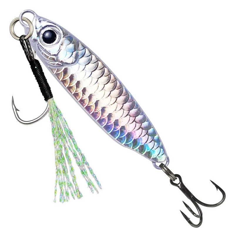 (2)Our jigs made of solid lead with laser reflective coating, lifelike 3D eyes and Streamlined fish shape, good attractive for all saltwater.
