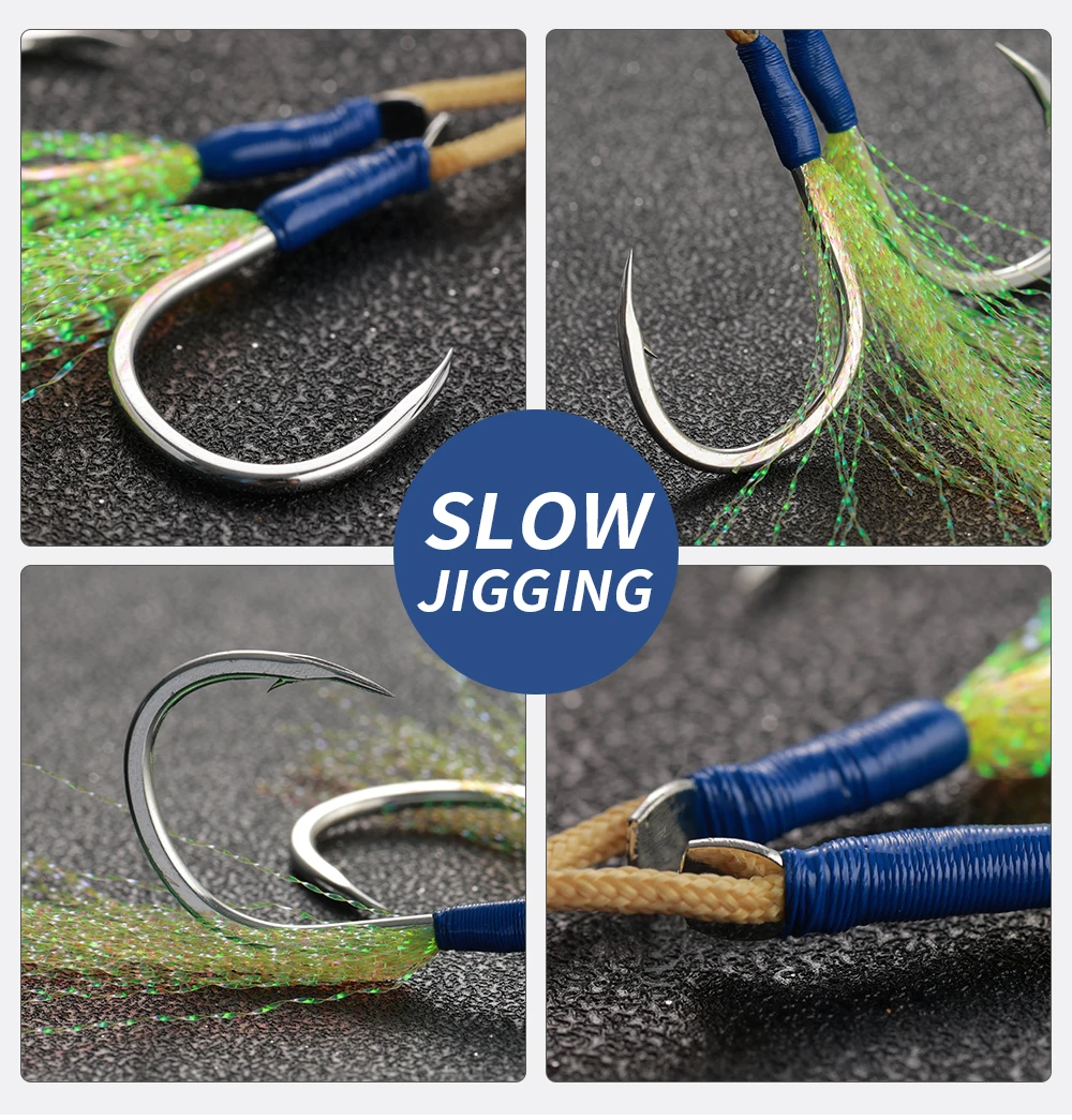 Anzuelo de pesca Jiggingpro de alto carbono, anzuelos de asistencia de plantilla lenta para agua salada, accesorios de pesca en el mar 1/0 2/0 3/0 4/0