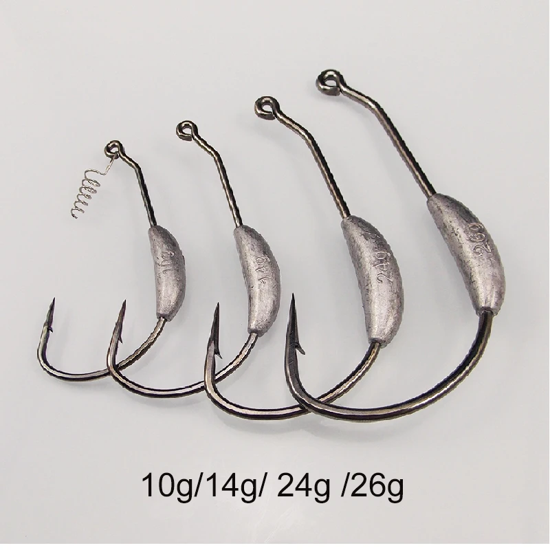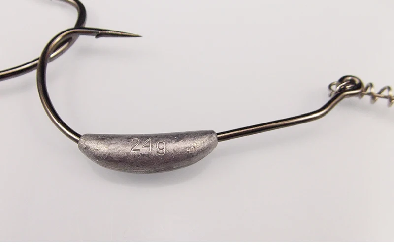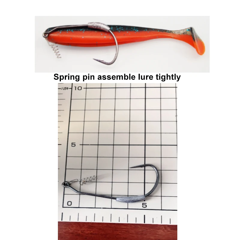 Los anzuelos (modelo de 10 gramos) encajan perfectamente para peces Hog Shad de 150mm.