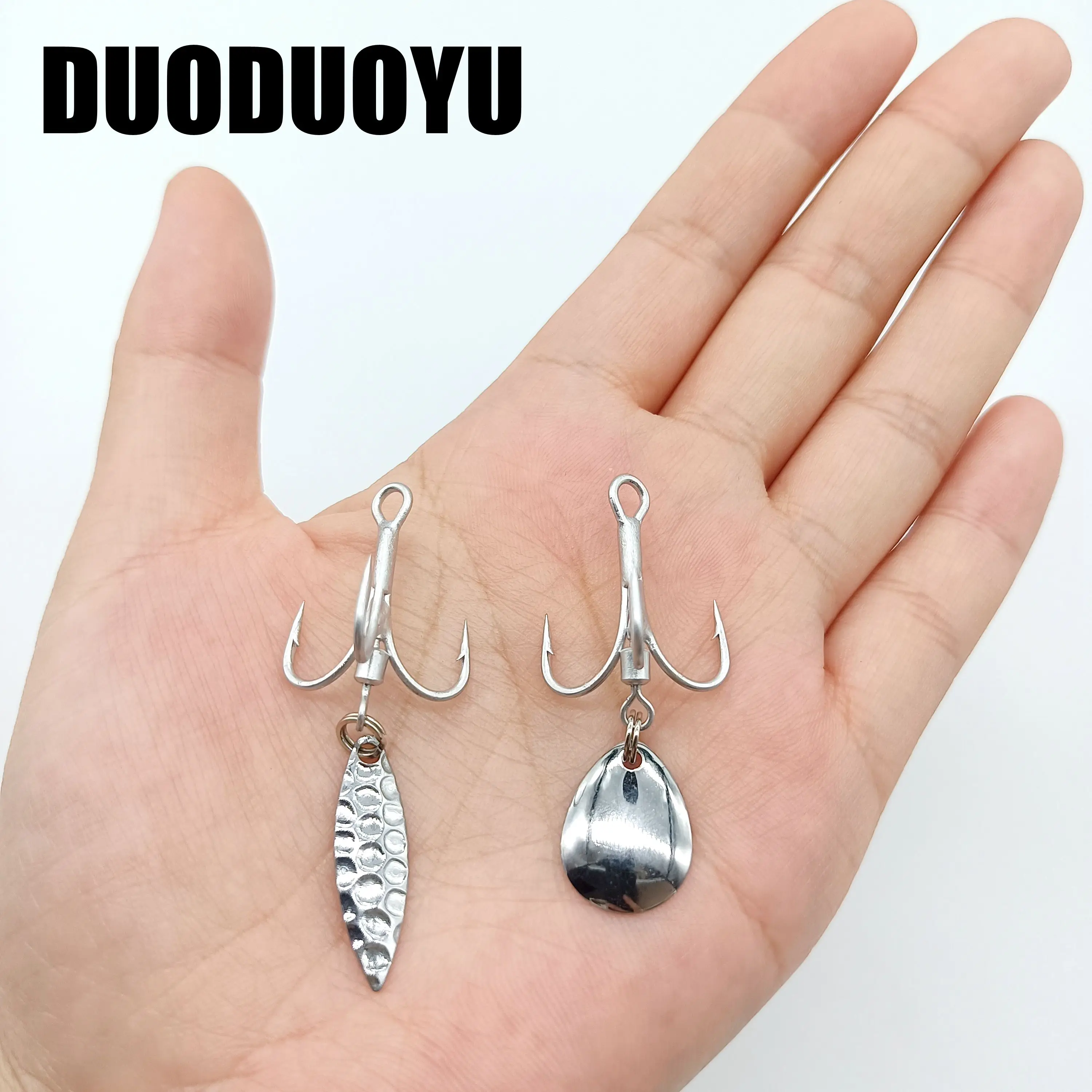Anzuelo de pesca con lentejuelas giratorias, 1 unidad, 4 #6 #, cebo de pesca de púas de Metal, anzuelo triple con cuchara, gancho de pesca de acero de alto carbono