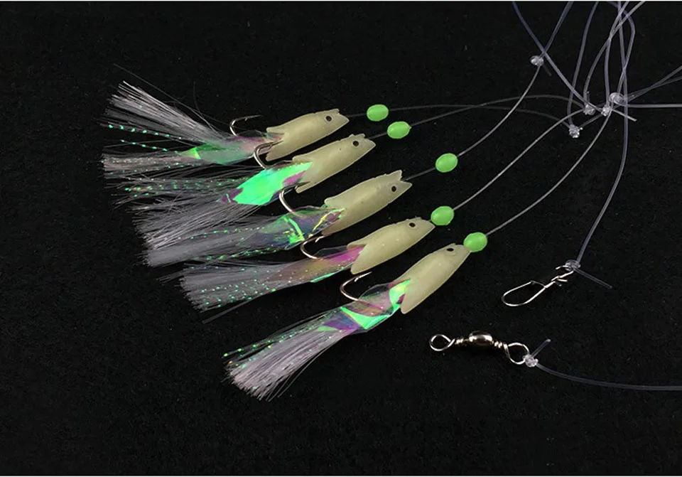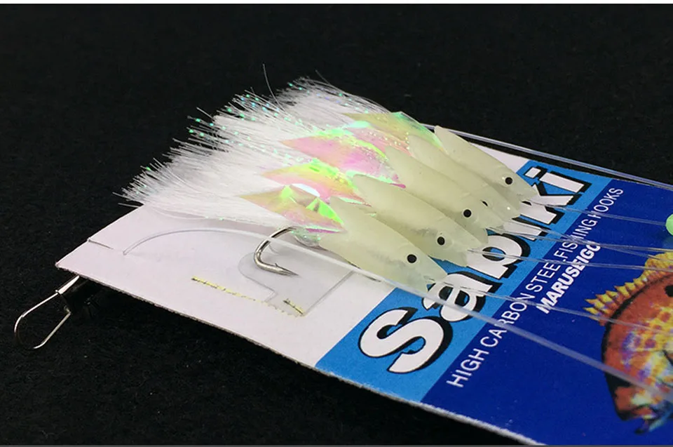 Anzuelo de pesca luminoso de acero de alto carbono, plumas de caballa, señuelo de lubina, 5 bolsas, anzuelos de cebo, herramienta de alambre B4, 25 unids/set