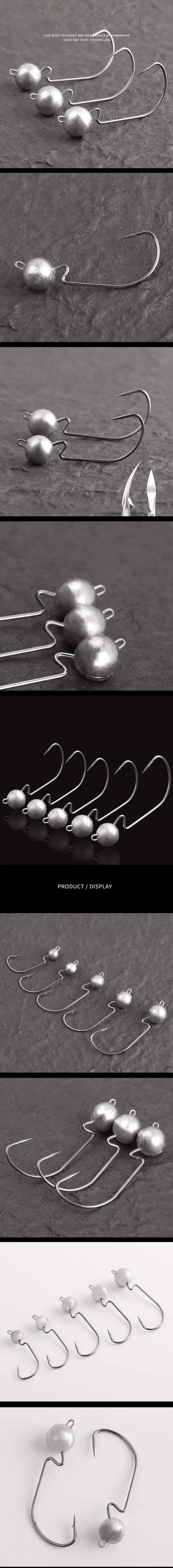 5/10pcs Wide Crank Offset Fishing Hook Lead Jig Head Fishhook For Soft Worm Lure 3.5g-14g Barbed Carp Fishing Hooks