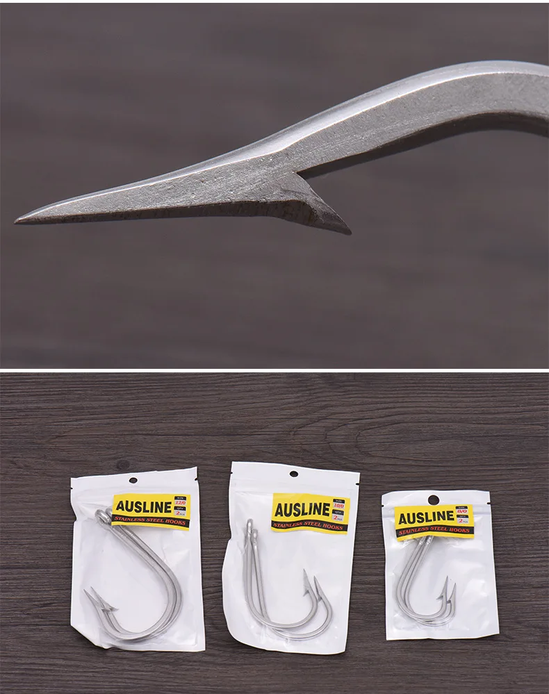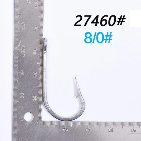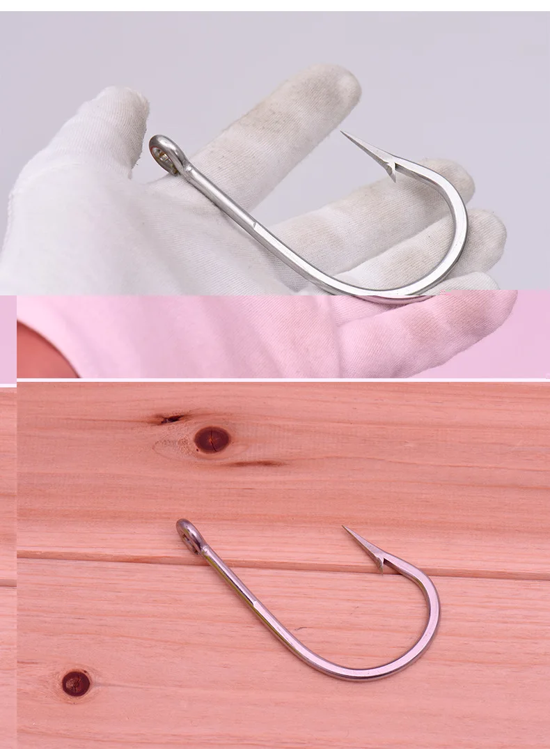 Anzuelo de pesca de mar de acero inoxidable, anzuelos de caña larga extremadamente afilados, tamaño 8/0 para peces de aguas profundas, juego de pesca grande de agua salada, 3 uds.
