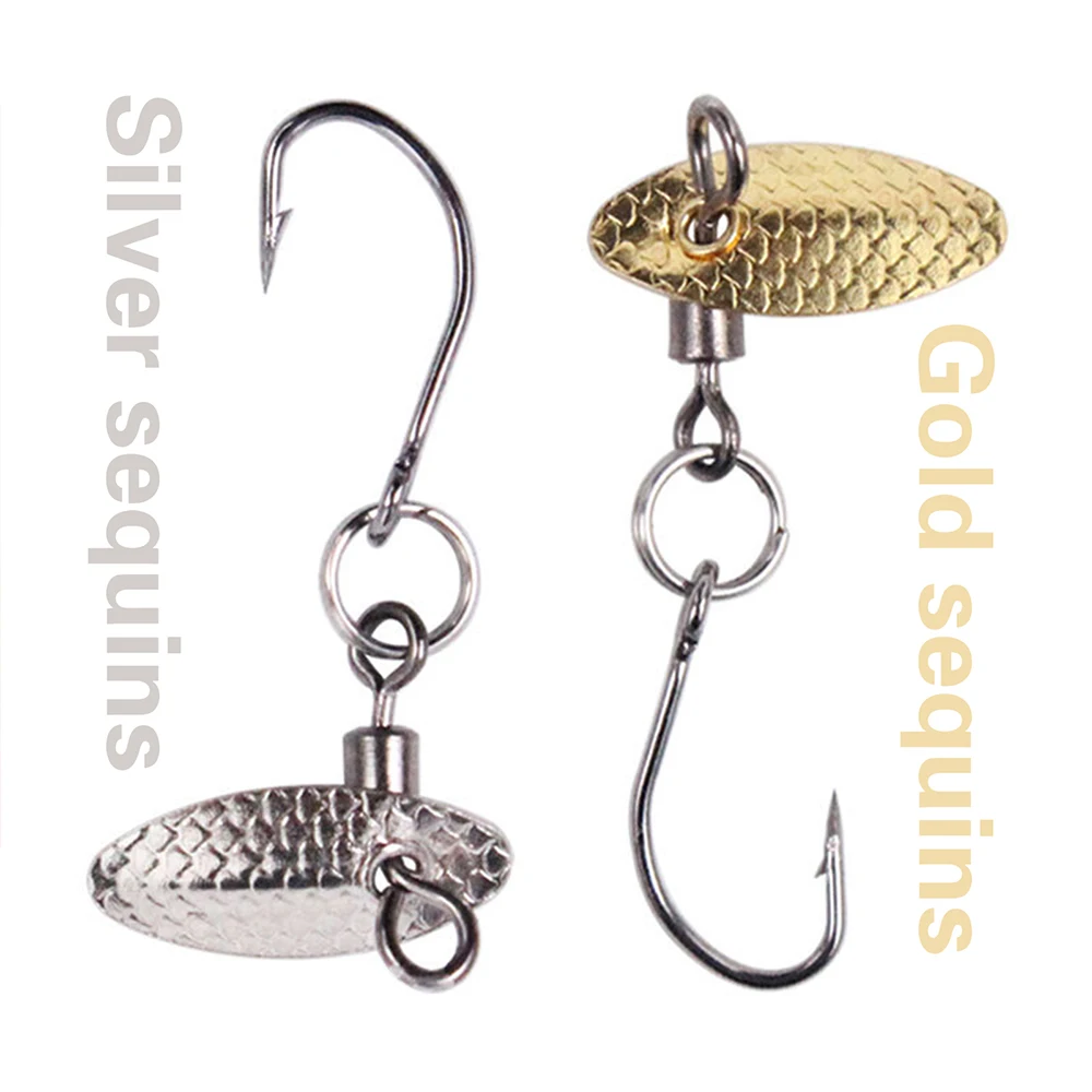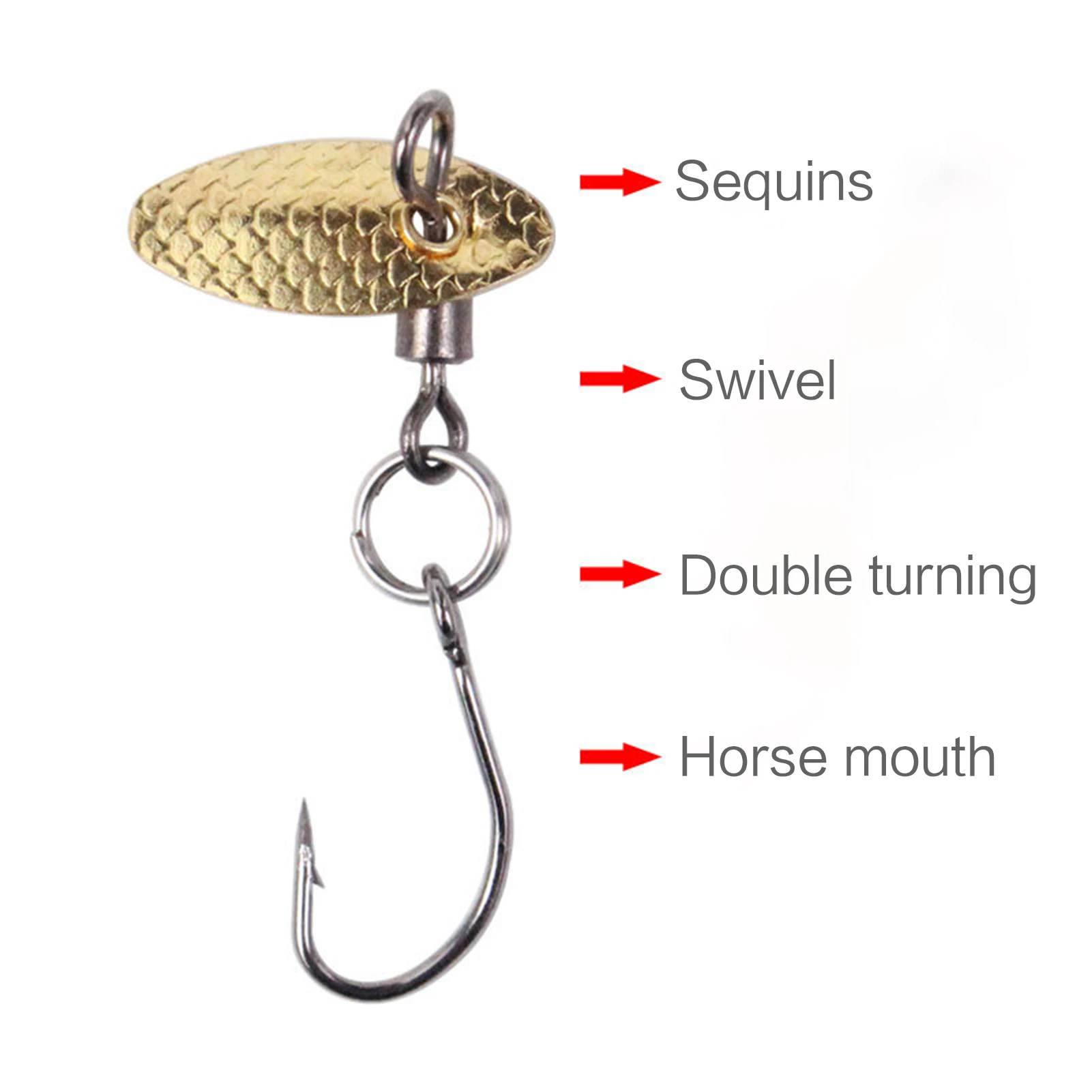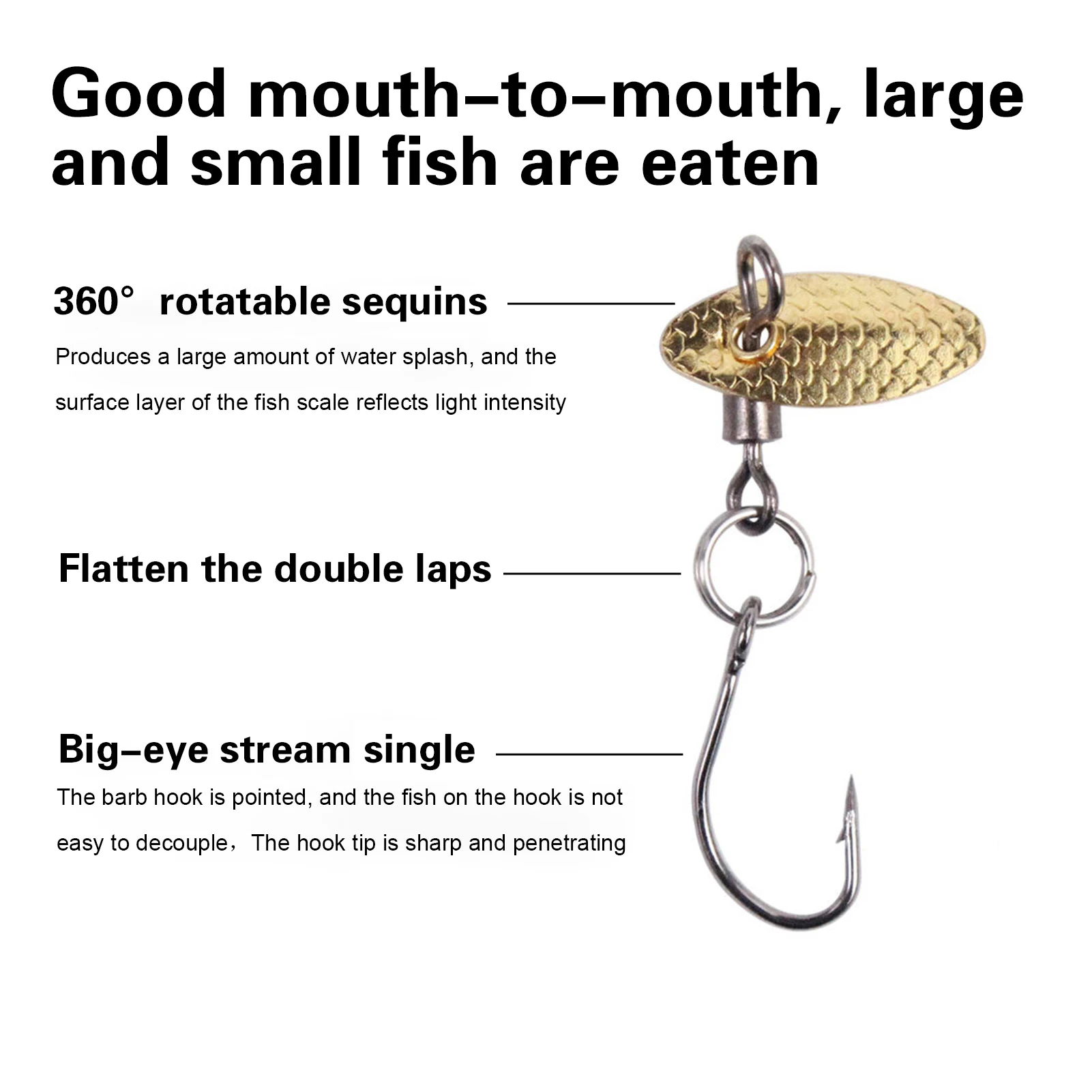 3. Fácil de usar: este anzuelo tiene lentejuelas giratorias de 360 °, que pueden producir muchas salpicaduras de agua, y la luz reflejada en la superficie de las lentejuelas es fuerte. La elección perfecta para los pescadores.