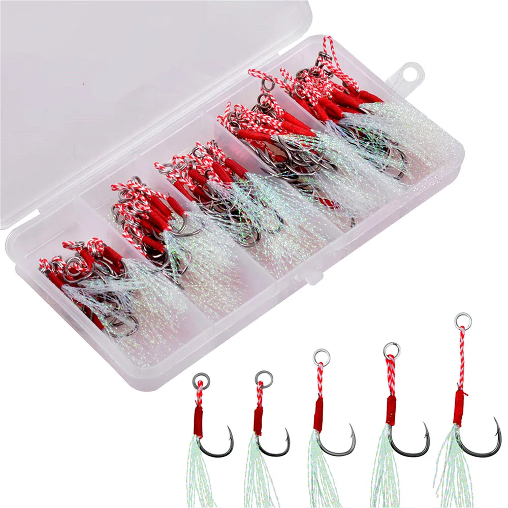 Anzuelo de Metal de Fundición, Anzuelo de Pesca, Jigging Lento, Anzuelo de Púas, Atar Pluma Intermitente, 80 Unidades