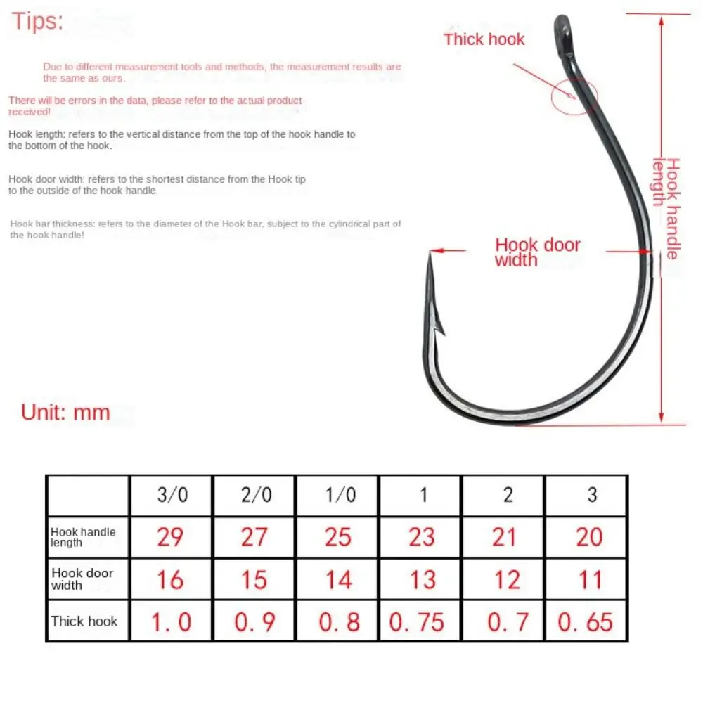 Producto: Anzuelo Material: Acero de alto carbono Tamaño: 3 #, 2 #, 1 #,1/0,2/0 Paquete: 50 Anzuelos de pesca de carpa de 100%, nuevos y de alta calidad. Nota: 1. Debido a los diferentes monitores y efectos de luz, el color real del artículo puede ser ligeramente diferente del color que se muestra en las imágenes. ¡Gracias! 2. Permita una desviación de medición de 1-2cm (0,39-0,79 pulgadas) debido a la medición manual.