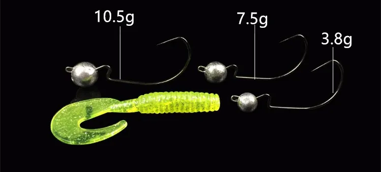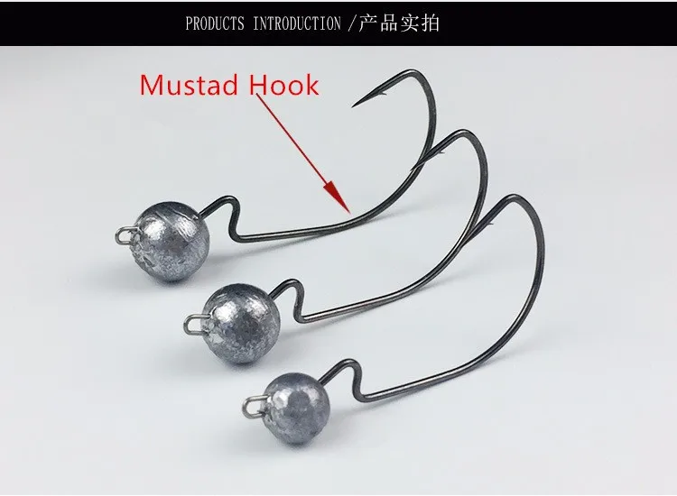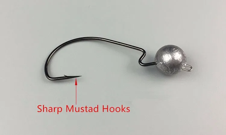 Anzuelo de Mustad de pesca, cabeza de plantilla, manivela de gusano de Color Original afilada, anzuelo de 3.8/7,5/10,5g, lote de 3 piezas