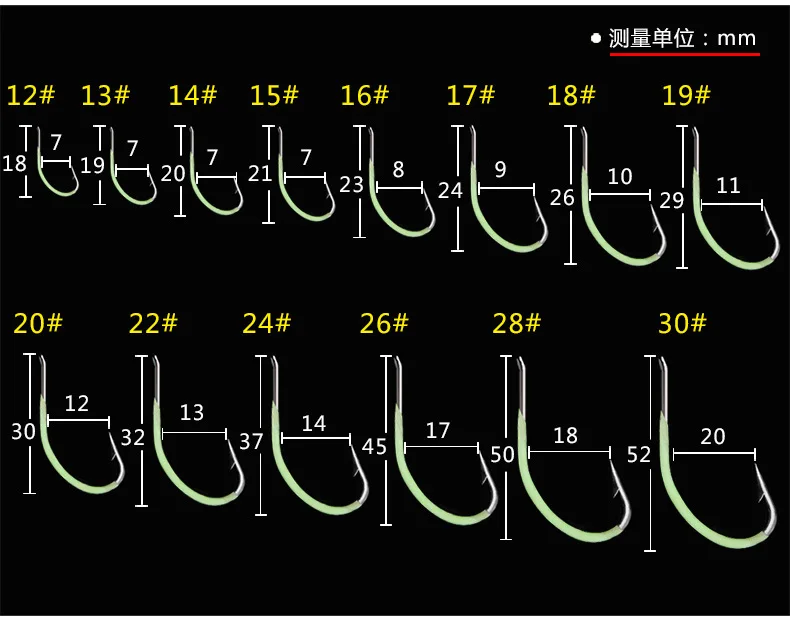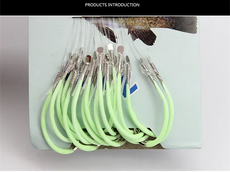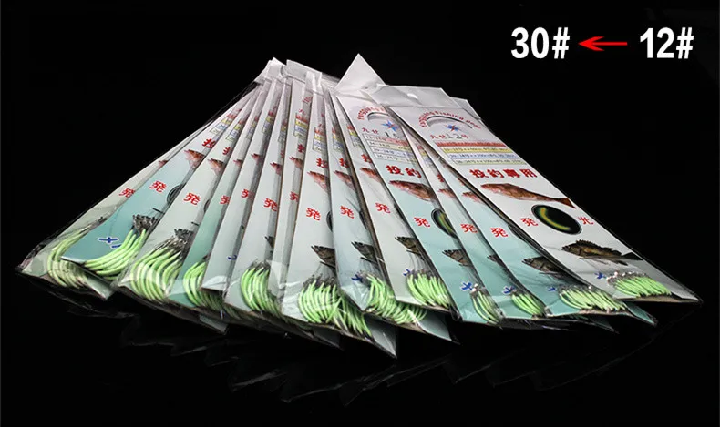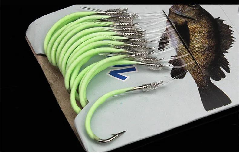 Anzuelo de pesca nocturno que brilla en la oscuridad, anzuelos de cuerda 12-30 # Manivela luminosa Nake Anzuelo individual de agua dulce y salada