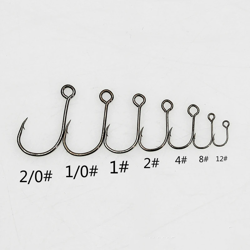 Anzuelo de pesca de ojo grande de acero de alto carbono 12 unids/pack para cebo vivo y cebo duro, anzuelos de pesca superbloqueados, aparejos de pesca