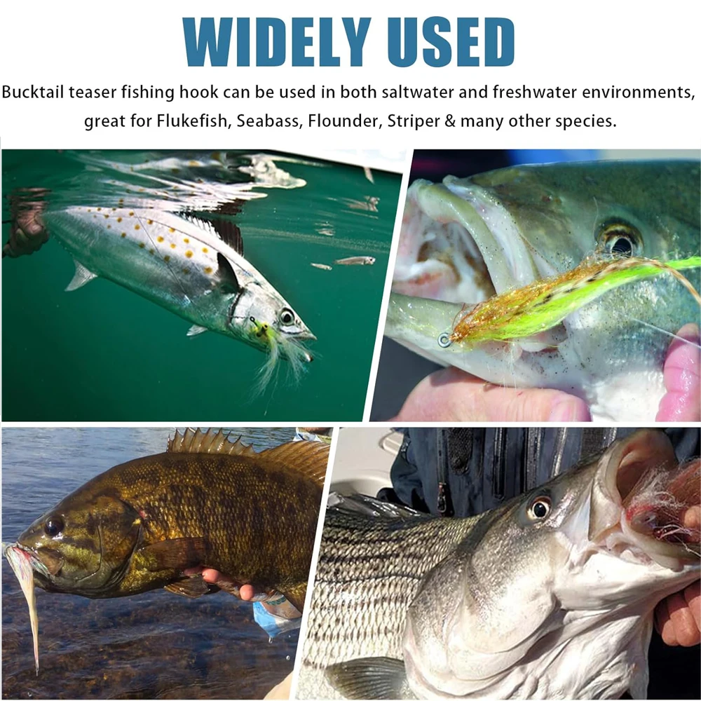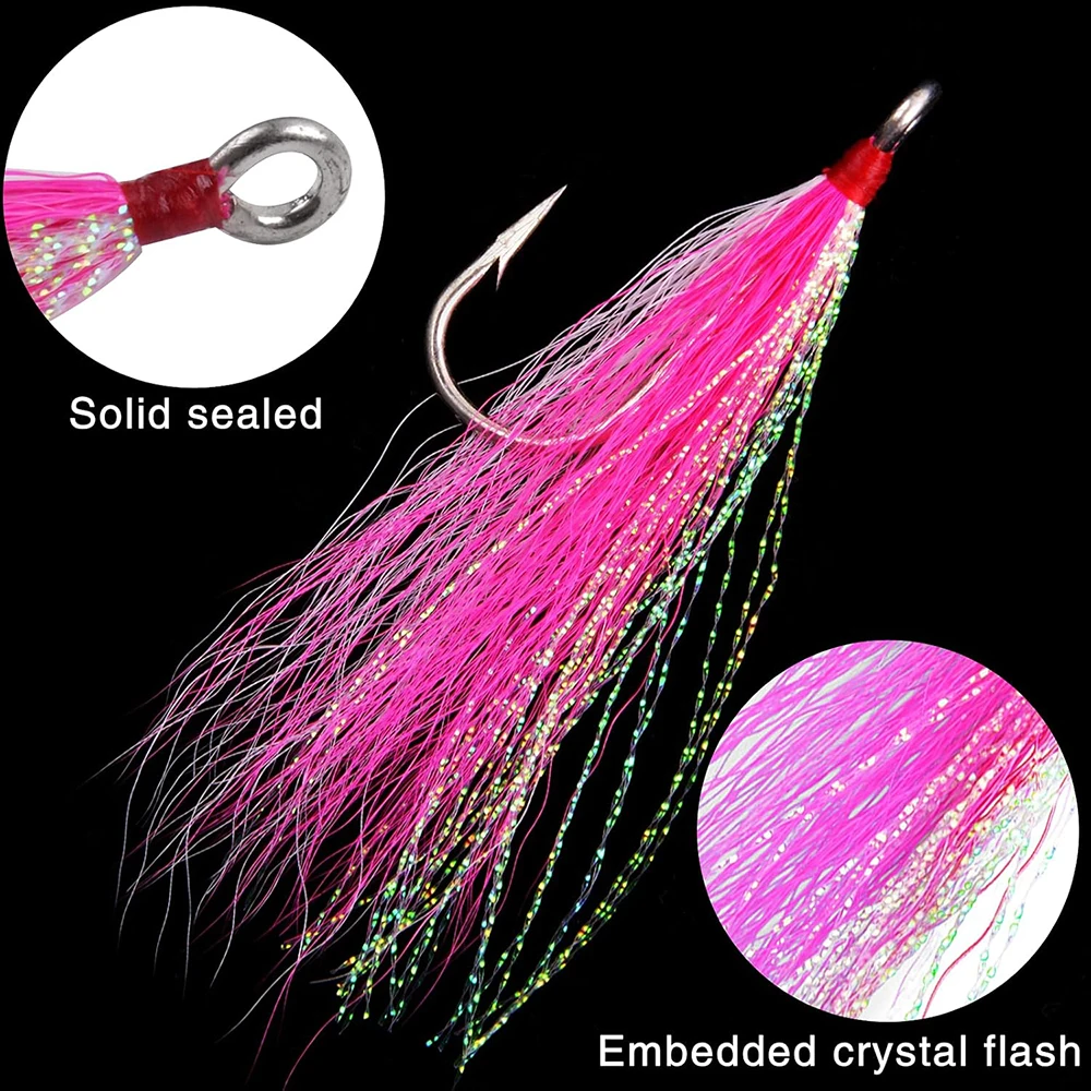 Cantidad: 2PCS Color: rosa, blanco, rojo, verde Material: acero inoxidable Modelo: Anzuelos de pesca Bucktail Característica detallada: 1.Los anzuelos de pesca de teaser de agua salada con jigs de bucktail cuentan con cola de bucktail/cola de cristal atada a mano con colores brillantes, lo que agrega un destello y movimiento que atrae a los peces a los aparejos de agua salada, aumentando sus posibilidades de lograr una captura exitosa.2.Los anzuelos Bucktail fabricados en acero inoxidable resistente ofrecen resistencia y durabilidad excepcionales.Su construcción garantiza que pueda soportar condiciones difíciles de pesca en agua salada y proporcionar una mayor relación de enganche.3.Los anzuelos de pesca Teaser están disponibles en 4 colores brillantes diferentes, el verde blanco funciona mejor en aguas claras, especialmente en días soleados;Rojo es una excelente opción inicial cuando el agua es turpitosa debido a su alta visibilidad;El rosa funciona muy bien cuando los aparejos de planto para agua salada se alimentan en calamares locales o camarones de mantis.4.Anzuelos de plumas Bucktail Teaser, ideales tanto para pesca costera, alta mar, en roca como en surf.Coge flounder, stripers, pargo, lubina, etc., pesca.