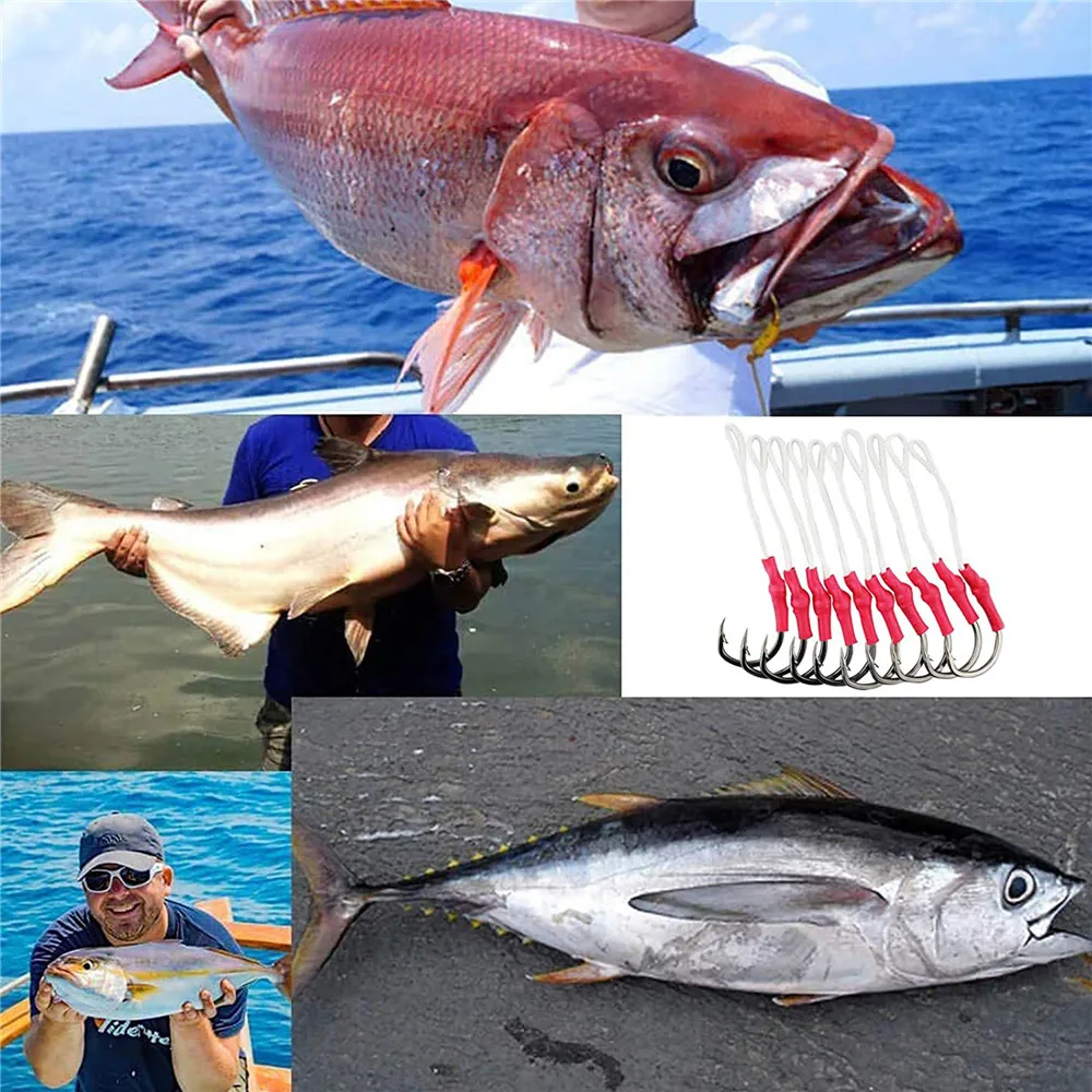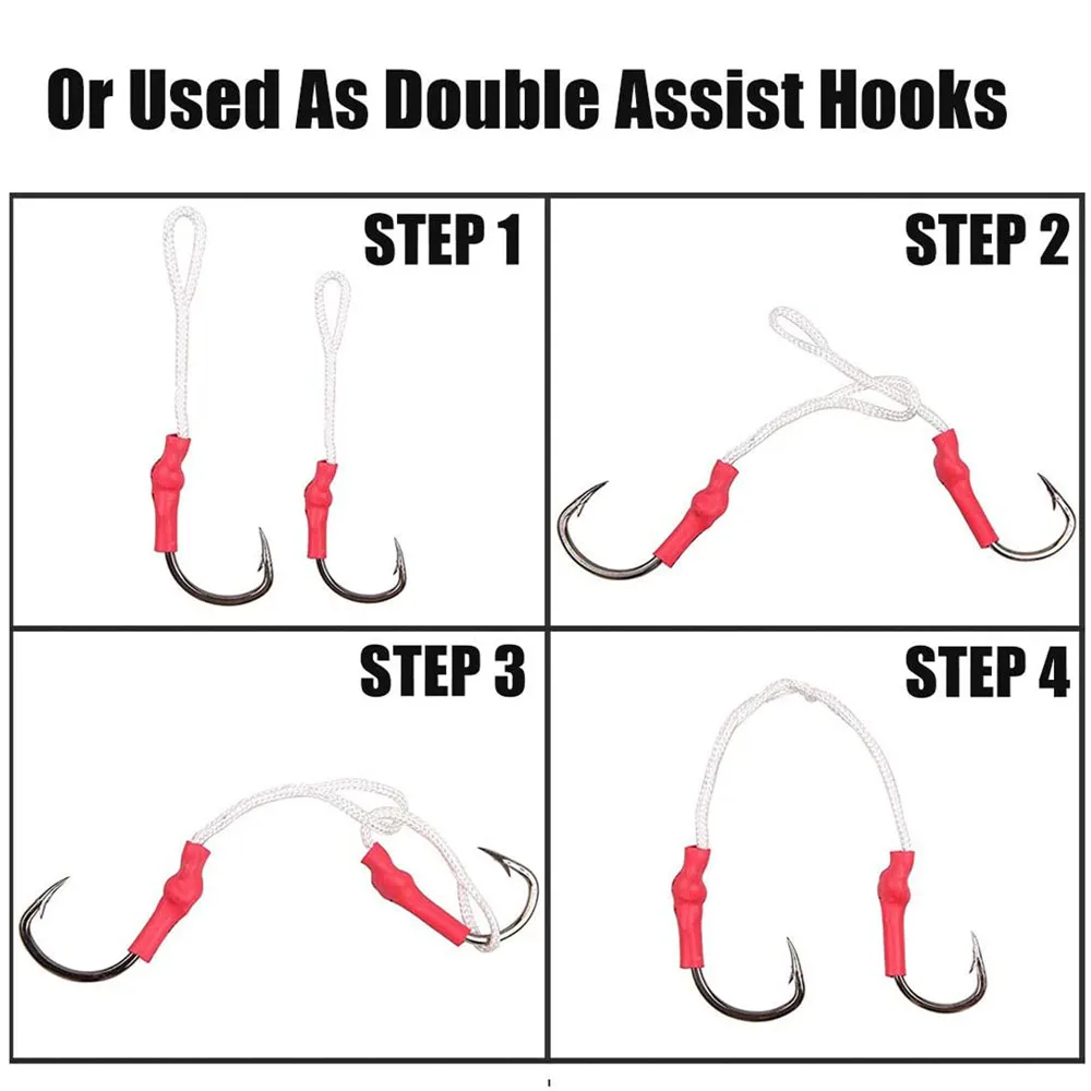 3. Los anzuelos de asistencia Jigging son perfectos para la pesca en arroyos, estanques, ríos, lagos y mares. Ideal para bagre, trucha de mar, platija, lubina rayada, gallineta nórdica, atún blanco, Cobia, bacalao, Delfín, mero, marlín, Lucio, atún gran juego curricán lento jigging señuelo aparejos de pesca.