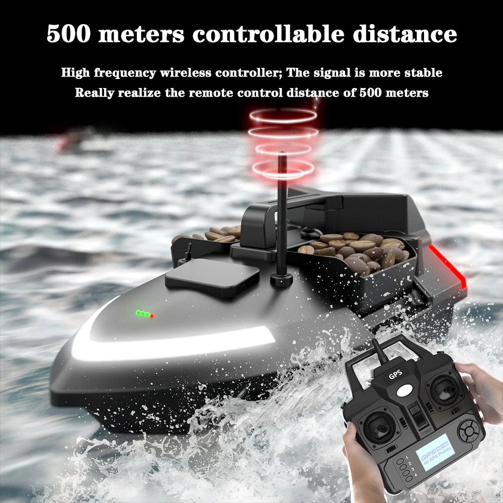 Cuando la batería del barco esté baja y la distancia del control remoto supere los 500 metros, el barco regresará automáticamente.