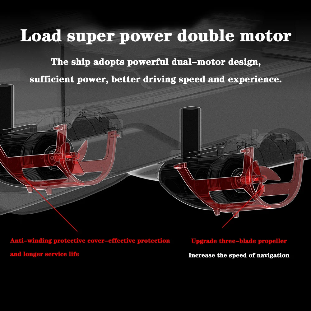 Equipado con una batería de gran capacidad de 5200/12000 mA y potentes motores duales, tiene un fuerte poder explosivo y una velocidad de carrera más rápida, lo que mejora en gran medida la velocidad de navegación.