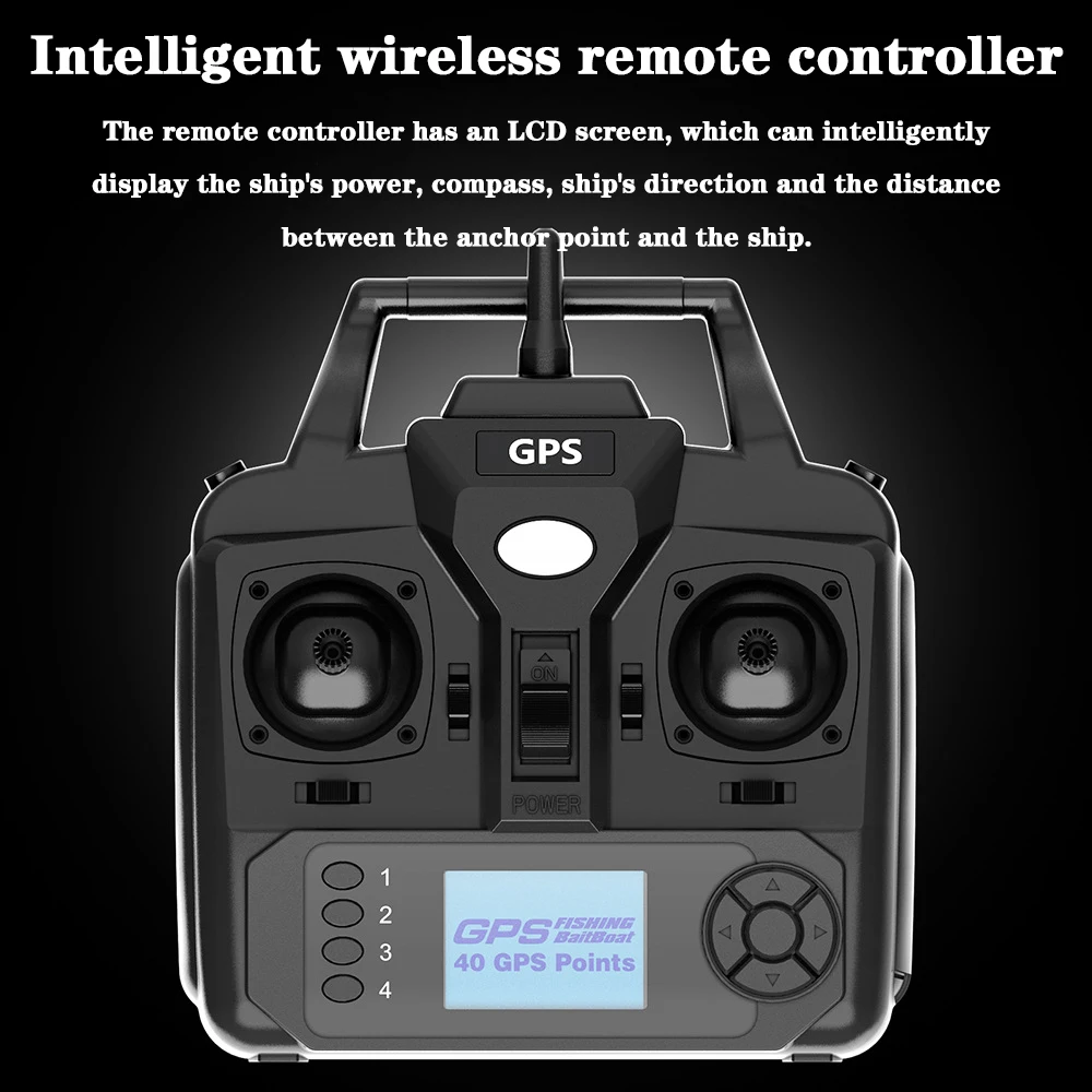 El mando a distancia tiene una pantalla LCD, que puede mostrar de forma inteligente la potencia del barco, la brújula, la dirección del barco y la distancia entre el punto de anclaje y el barco.