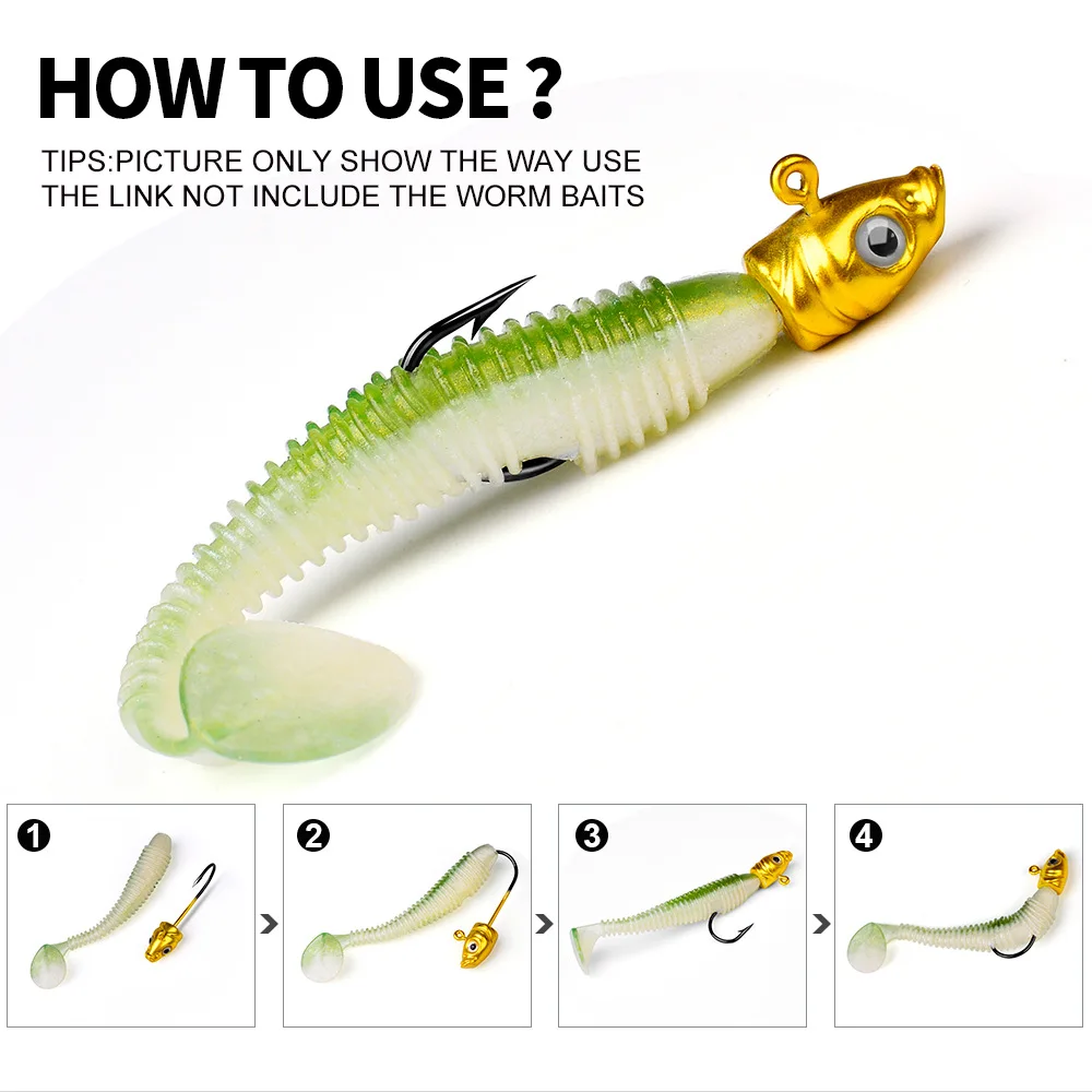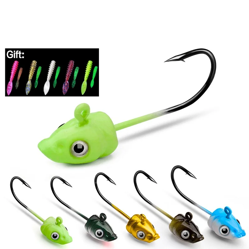Anzuelo de pesca con púas, 5 uds., 3,5g/5g/7g, ojo 3D, anzuelo con cabeza de anzuelo, anzuelo de gusano suave, anzuelo afilado, sin 0,4g, cebo de pesca para lubina y trucha