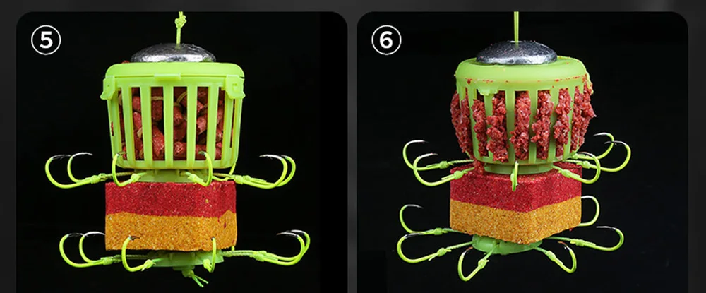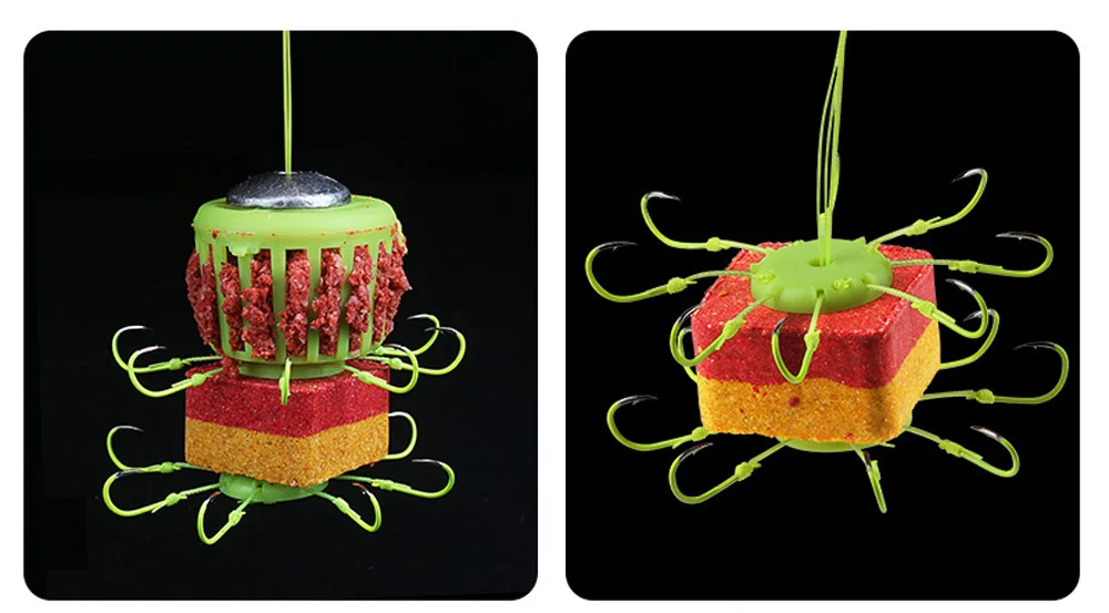 Anzuelo de pesca con púas de acero de alto carbono para alimentador de peces, anzuelos colgantes a prueba de bombas, anzuelos de explosión, cebo, embalaje de caja de plástico japonés, 2 unids/set