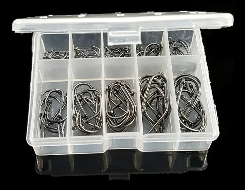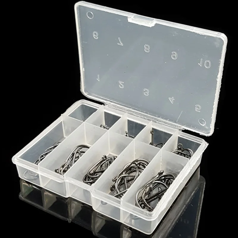 Anzuelo de Pesca de púas con agujero, mezcla de 3-12 #, anzuelos de Pesca de carpa de acero al carbono en caja, accesorios de aparejos de Pesca B181