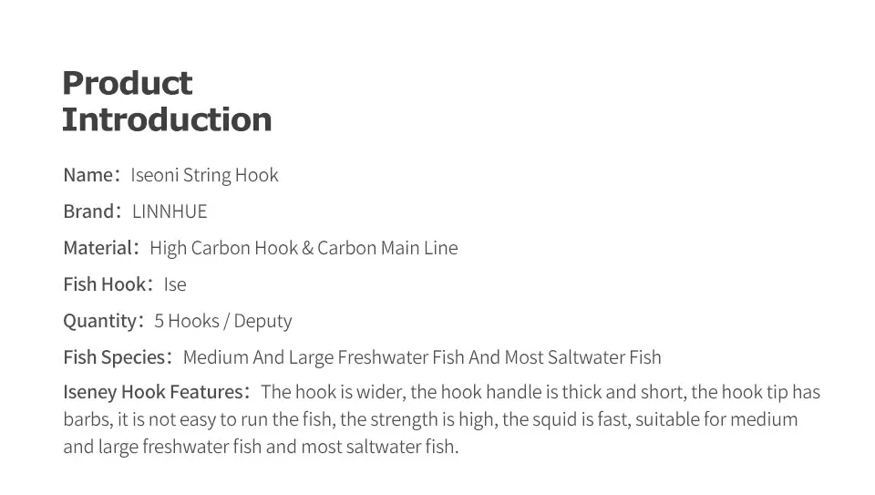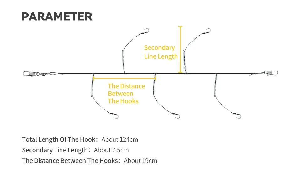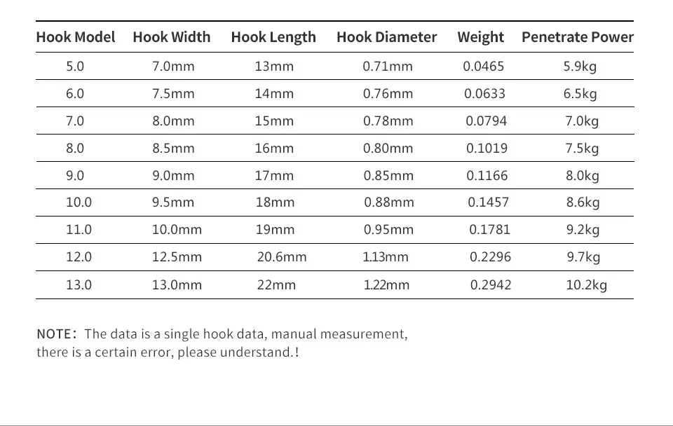 5.0#| Ancho: 7,0 mm| Longitud: 13 mm| Diámetro: 0,71 mm| Peso: 0,0465 g| Potencia: 5,9 KG