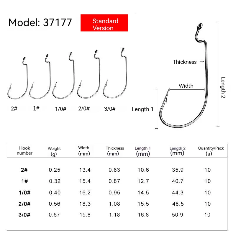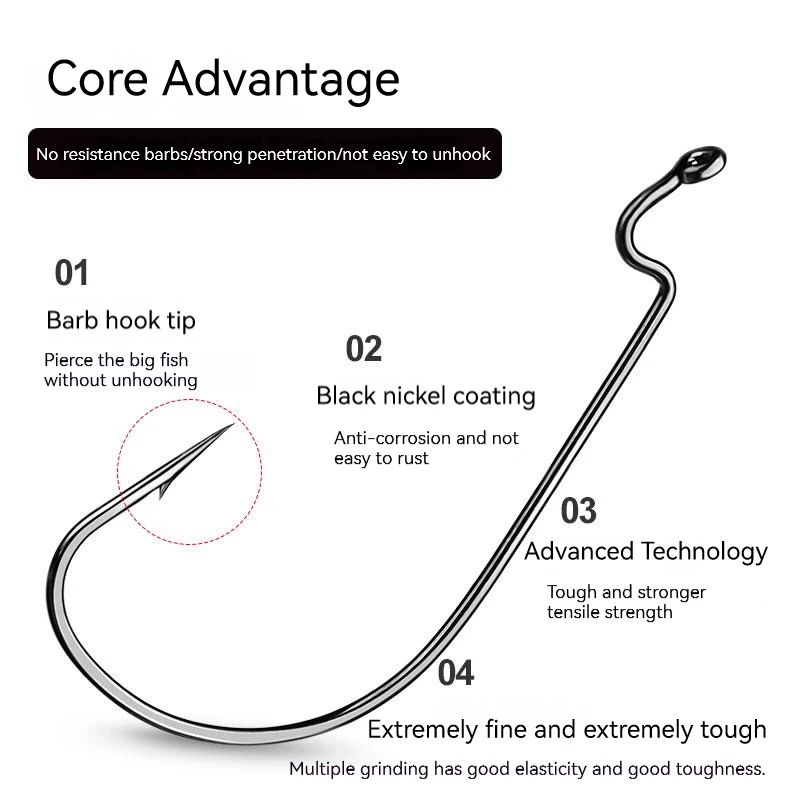 Anzuelo de pesca con púas de gusano de mango largo, anzuelos compensados, aparejos de Texas, cebo suave de acero rico en carbono, accesorios de anzuelo C Rig, 10 Uds.