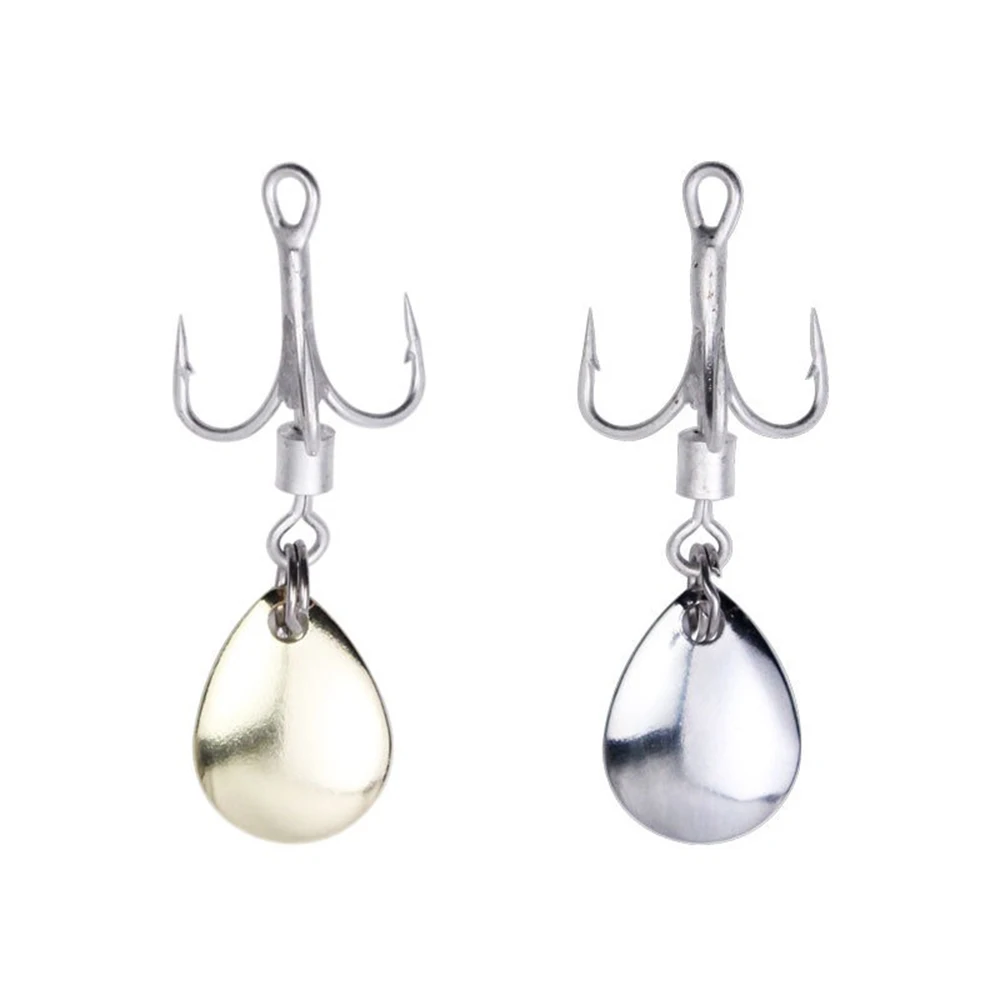 1 pieza 2#-10# Anzuelo de pesca con púas de Metal, anzuelo triple con cuchara, acero rico en carbono, aparejos de pesca con lentejuelas giratorias