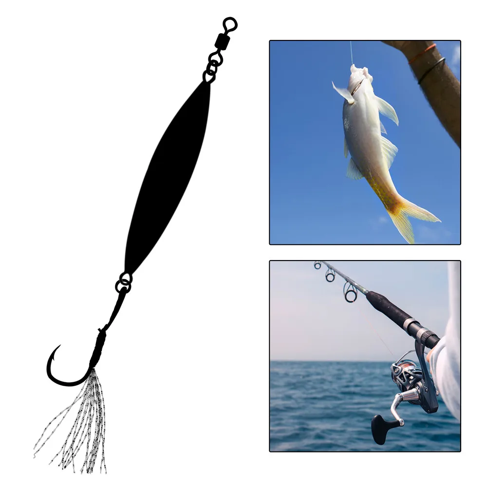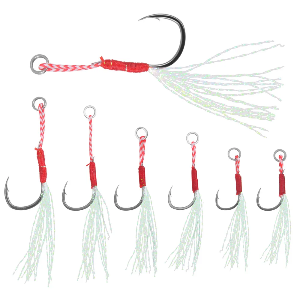 Anzuelo de pesca de acero al carbono con pluma, anzuelos de pesca con cabeza de púas, señuelo de pesca lento, 100 unids/lote