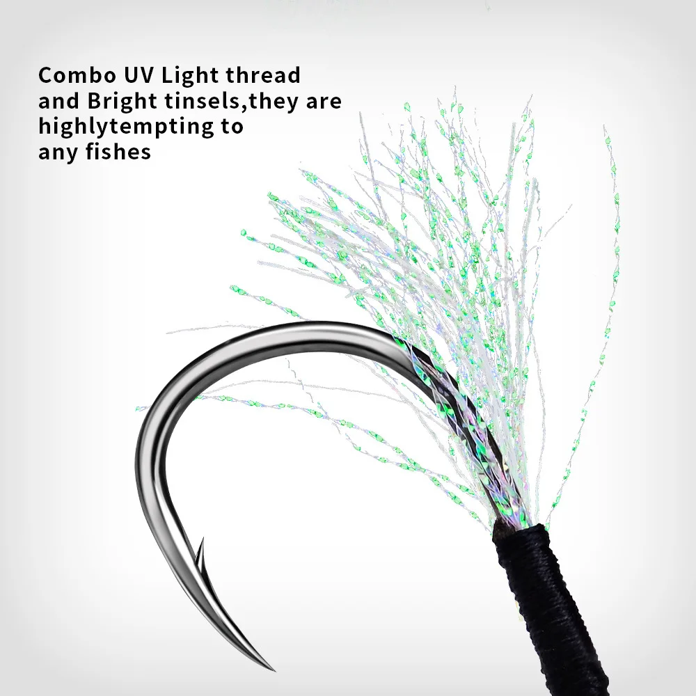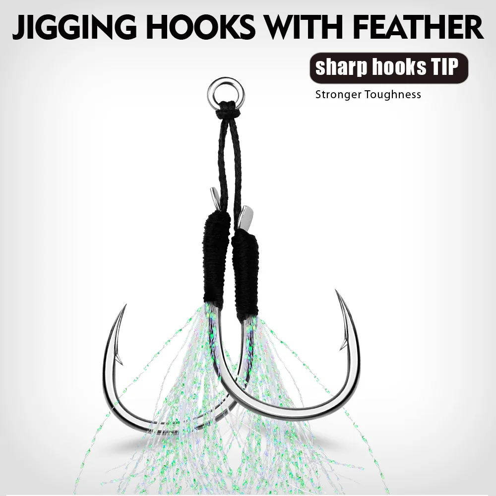 Anzuelo de Pesca con púas y plumas, señuelo de Pesca de acero de alto carbono, Jigging lento, 5 pares