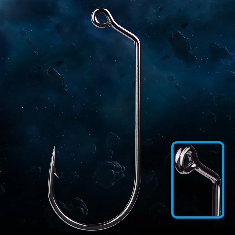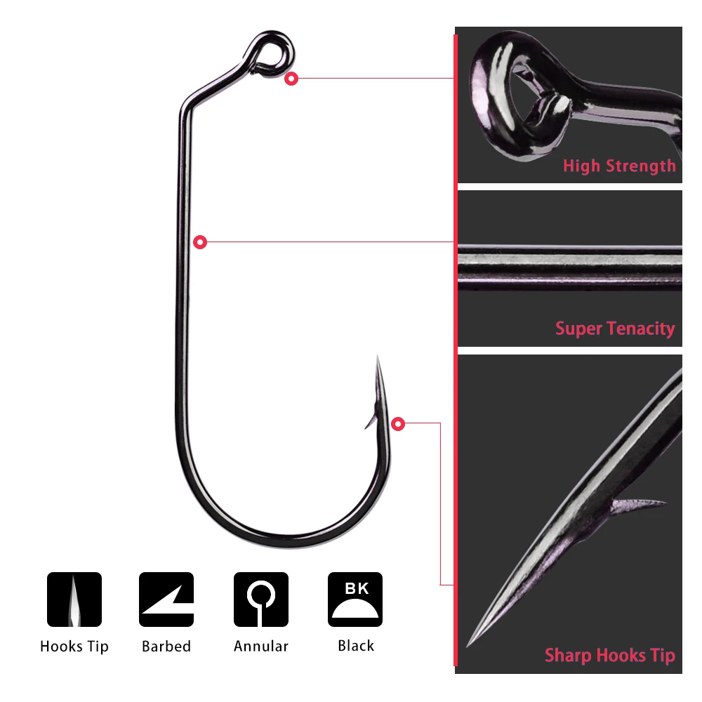 Anzuelo de pesca de serie grande, conjunto de anzuelos de manivela ancha, anzuelo con púas para gusanos blandos, aparejos de pesca de agua salada de carpa, 50 unids/lote por caja