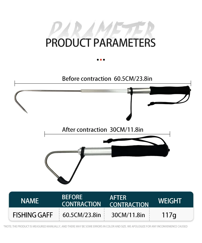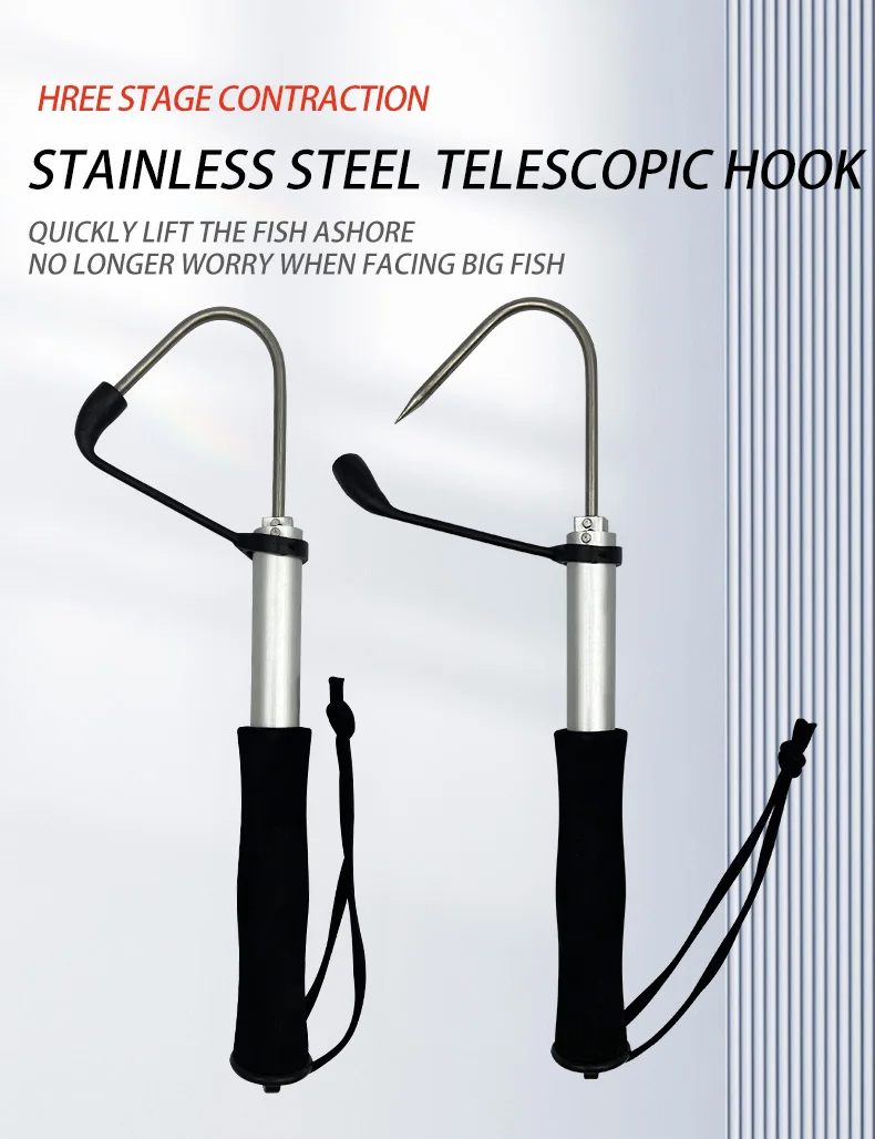 Gaff de pesca telescópico de 60cm, anzuelo de lanza de Pesca de Mar de acero inoxidable, anzuelo de pesca en hielo, herramienta de aparejos