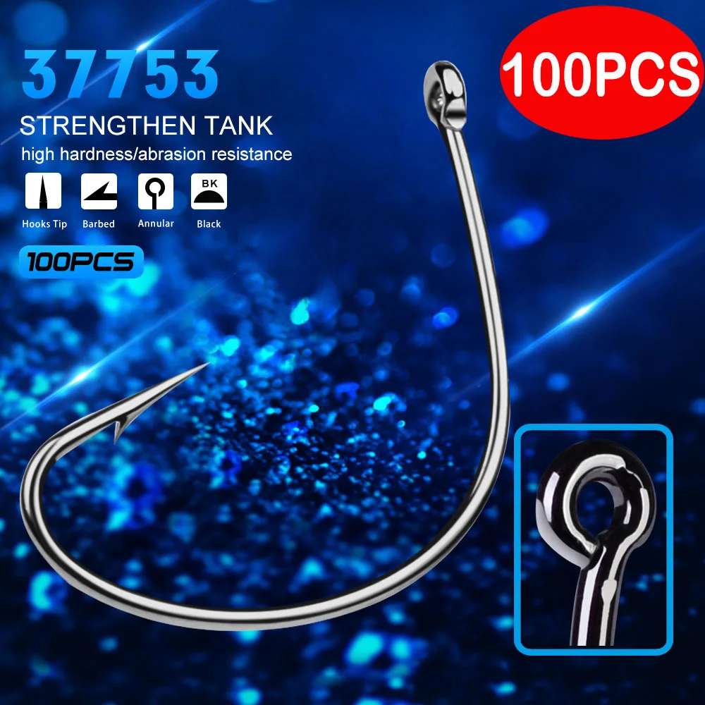 100 Uds anzuelo de pesca anzuelo de agarre anzuelo único acero de alto carbono con anzuelo de púas a granel anzuelos circulares aparejos de pesca Color: Color de la imagen