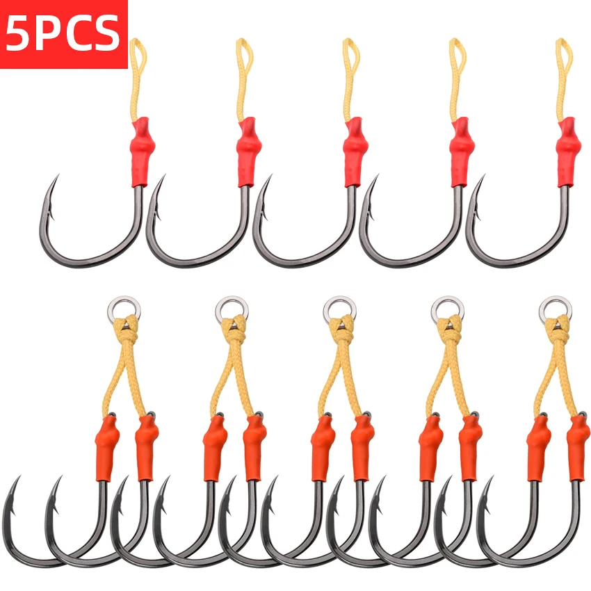 Anzuelo de pesca vertical de 5 uds., anzuelos de acero rico en carbono, anzuelo de asistencia japonés con púas, plantilla simple doble audaz, anzuelo lento para aparejos de pesca de lubina