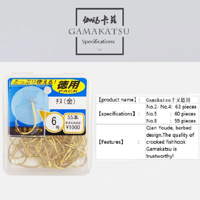 Anzuelo de pez Gamakatsu japonés de alta calidad, gancho de púas Taihai dorado, en caja