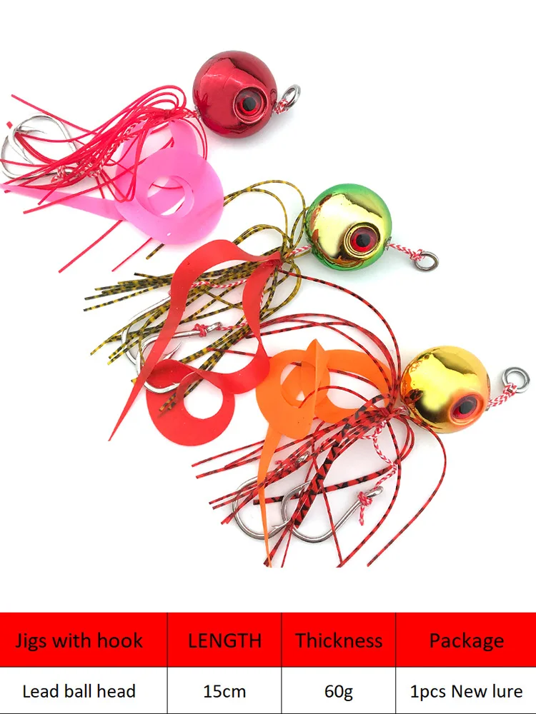 Anzuelo de plomo con placa de hierro, 250g/150g/120g/100g/80g/60g, de silicona, para pesca en el mar, con púas multicolor