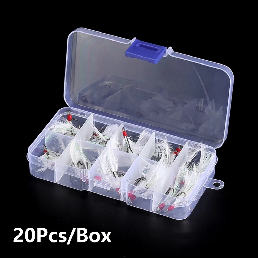 Anzuelo de pluma con púa, anzuelo de tres anclas para pesca salvaje, agua dulce y Marina, Universal, 20 unids/lote por caja