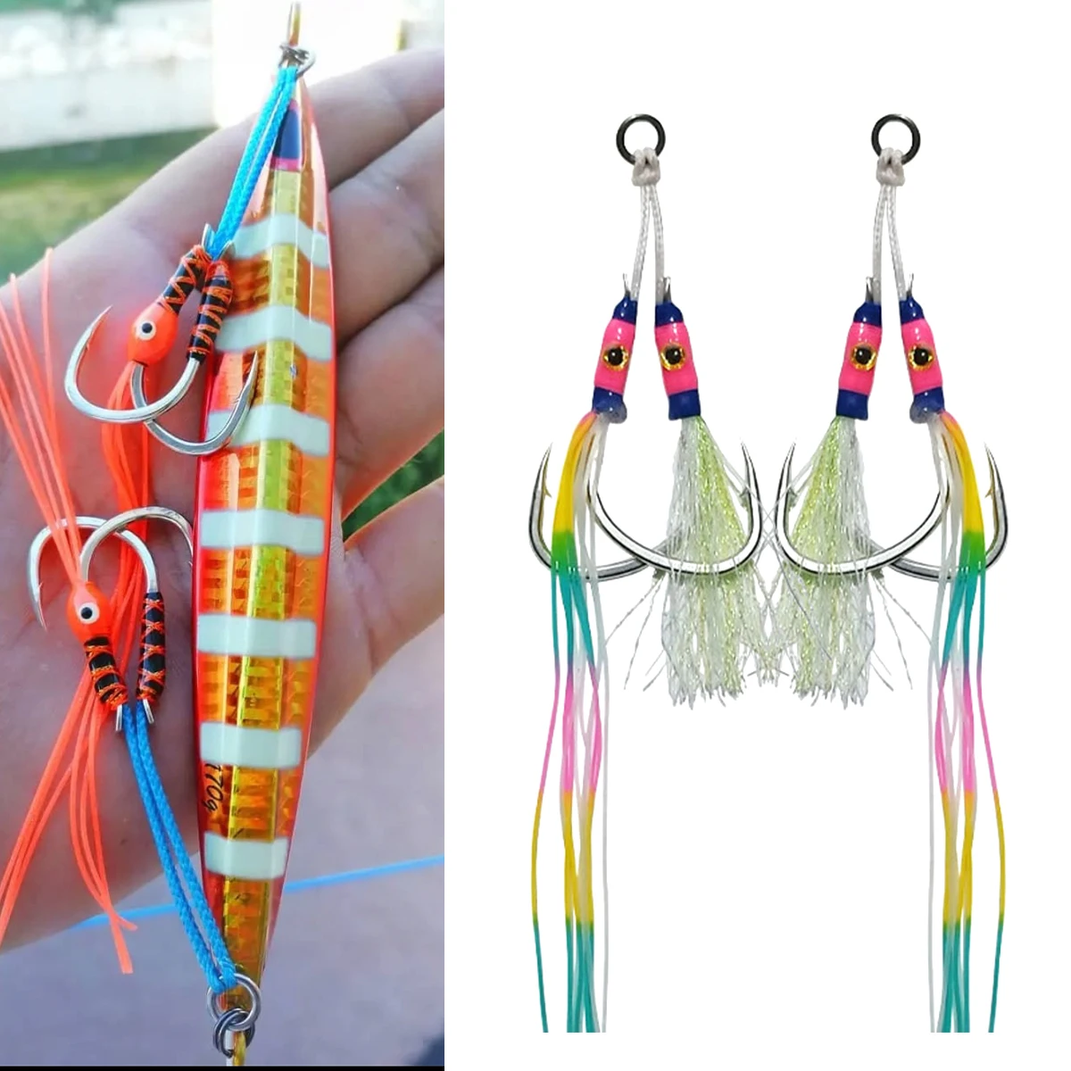 Anzuelo de plumas de plantilla de Metal 1/0 2/0 3/0 4/0 5/0 6/0 anzuelo de Jigging lento anzuelo de pesca anzuelos de asistencia anzuelos de pescado anzuelo doble