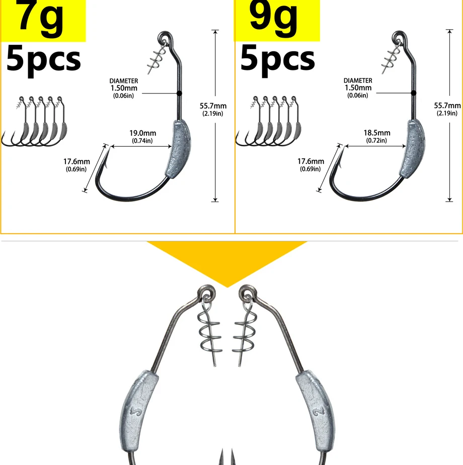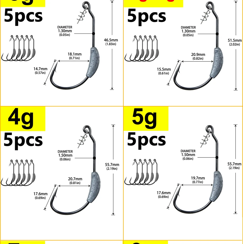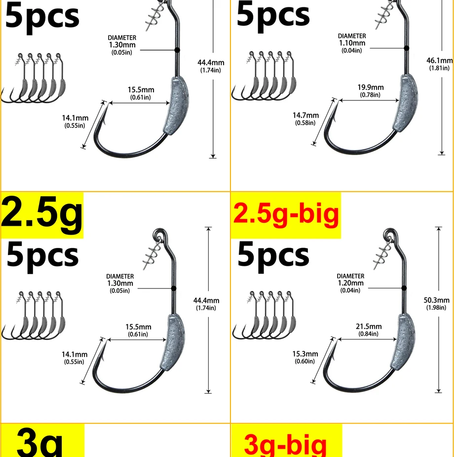 Anzuelo de púas con cabeza de manivela expuesta, 2g, 2,5g, 3g, 4g, 5g, 7g, 9g, anzuelos de pesca Offset, aptos para aparejos de pesca Texas Rigs