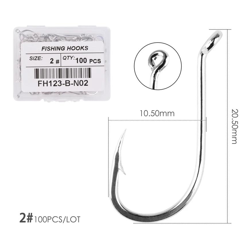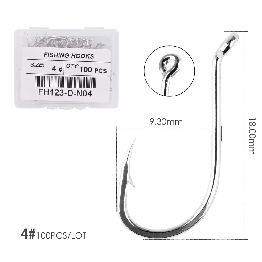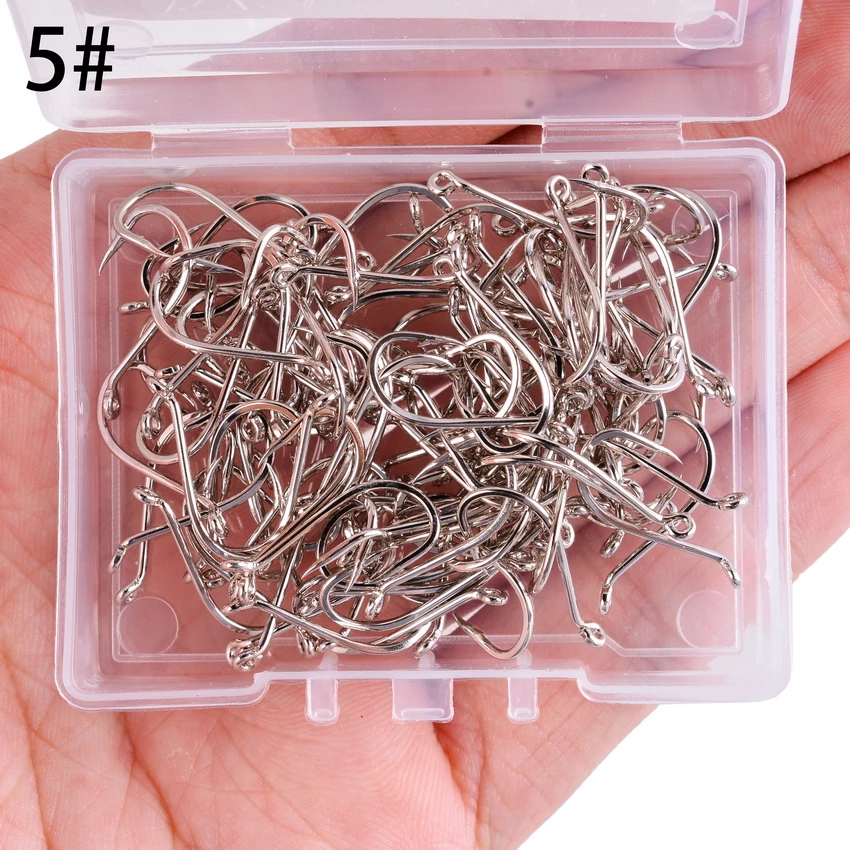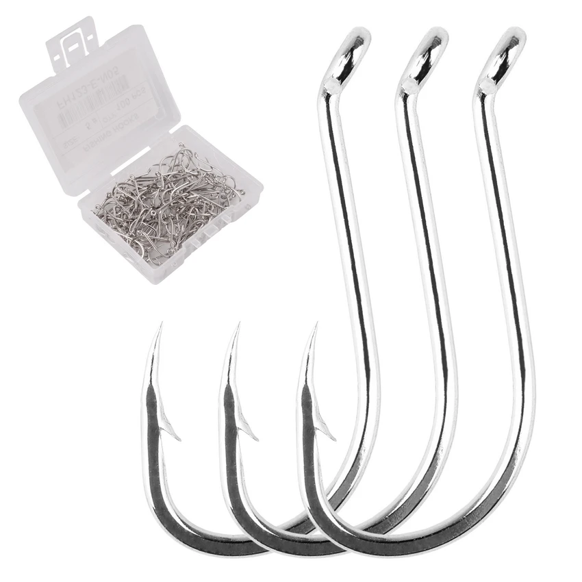 Anzuelo de pulpo de acero inoxidable para pesca en el mar, gancho de púas anilladas de caña larga, Jigging japonés, 1 #-10 #, 100 unidades por caja