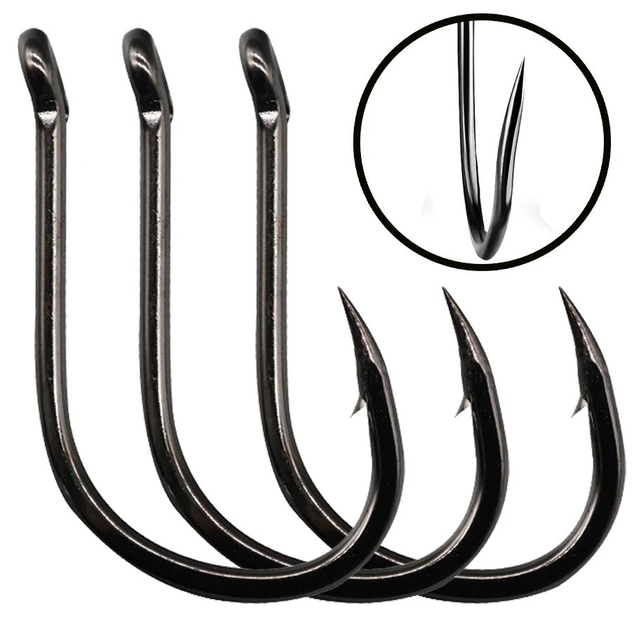 Amplias aplicaciones de diseño de puntos desplazados: Esto será útil para sus diversas necesidades.El tamaño más pequeño sería ideal para pescar croaker o alfinete para cebo y el más grande sería bueno para pescar trotas y trotas.El anzuelo de pesca con agua salada es fácil de conectar un señuelo blando. El punto de desplazamiento y la púa especial podrían hacer que la punta ruede en la esquina de la boca del pez y reduzca la mortalidad de los peces.