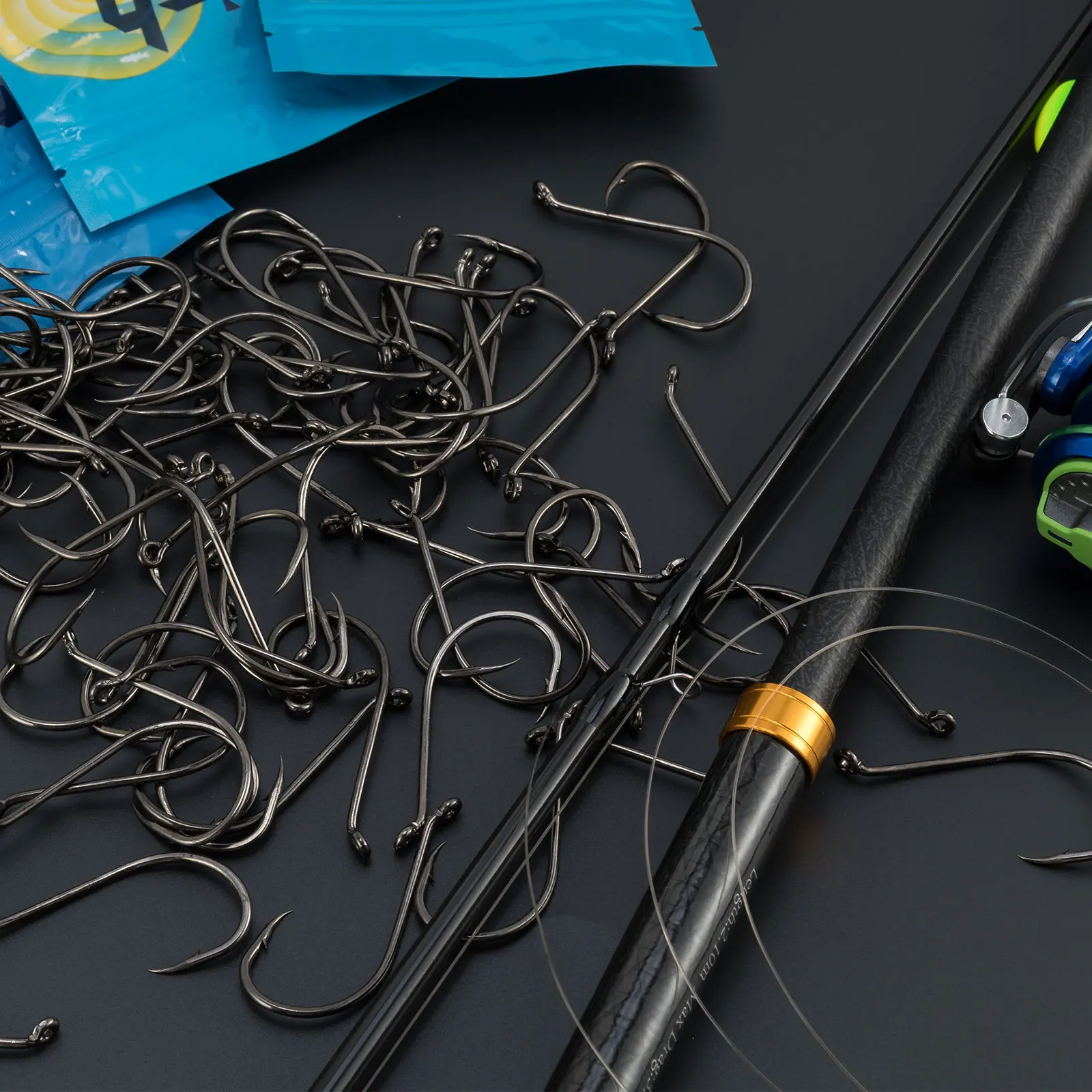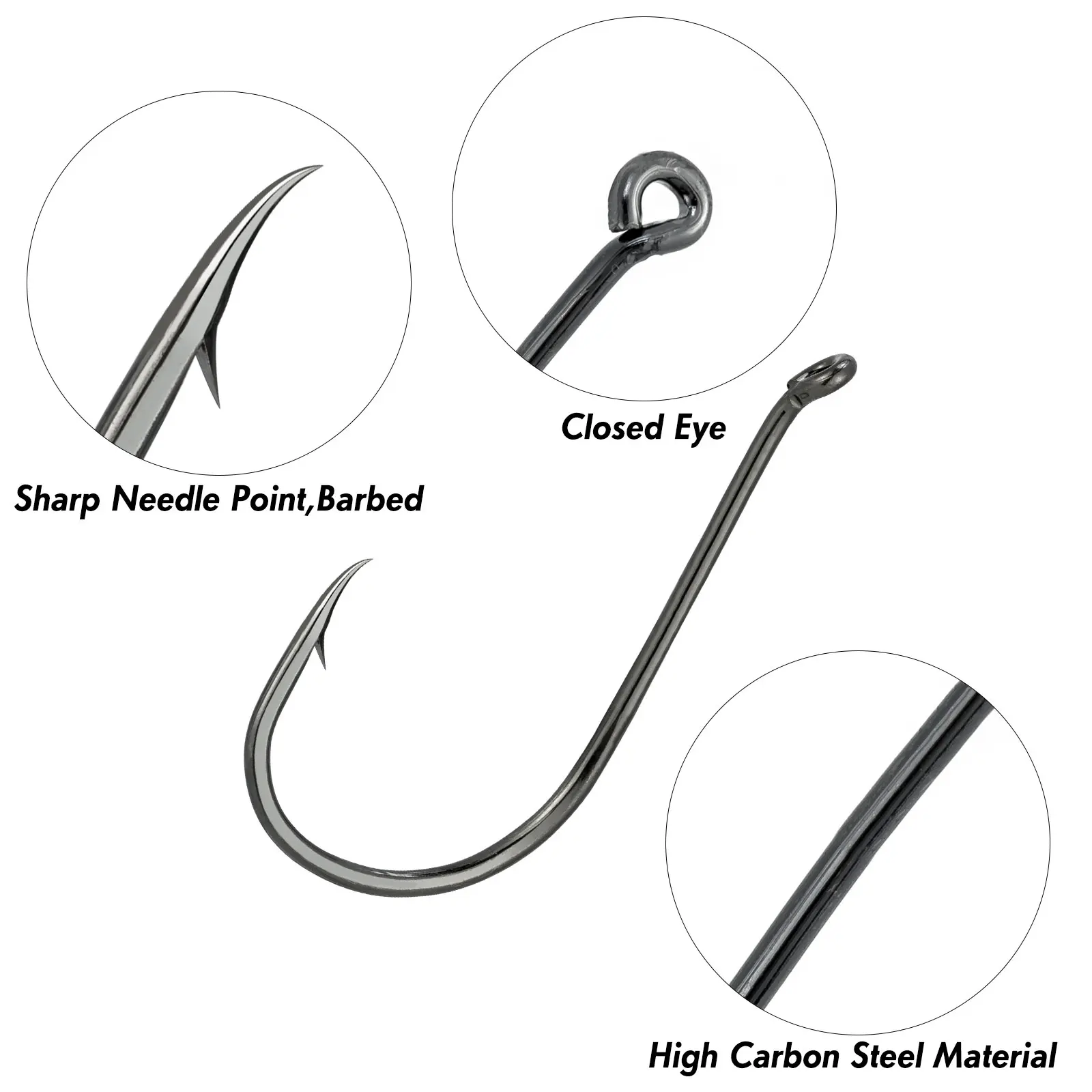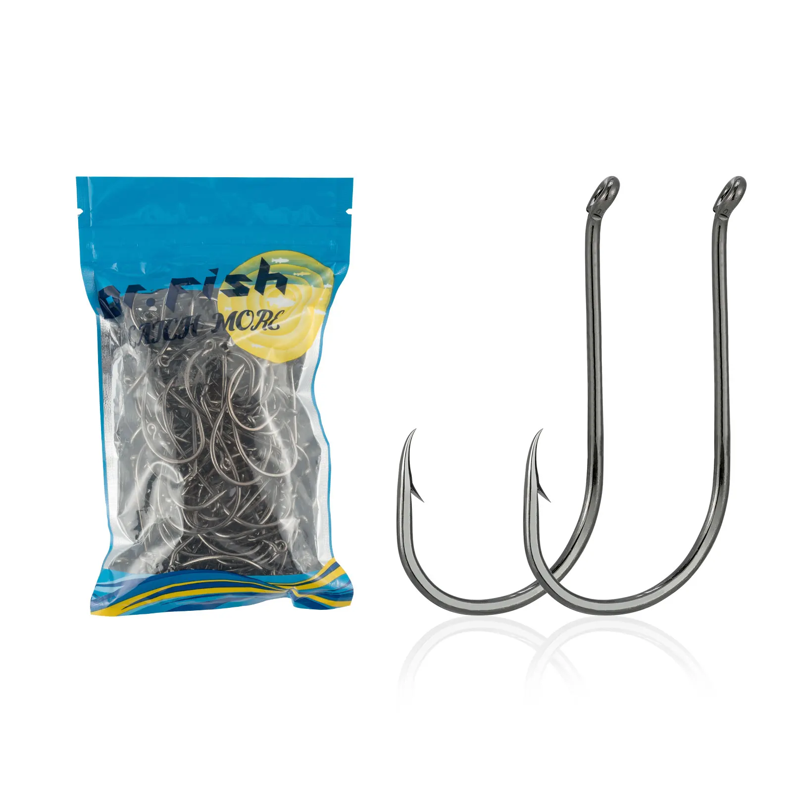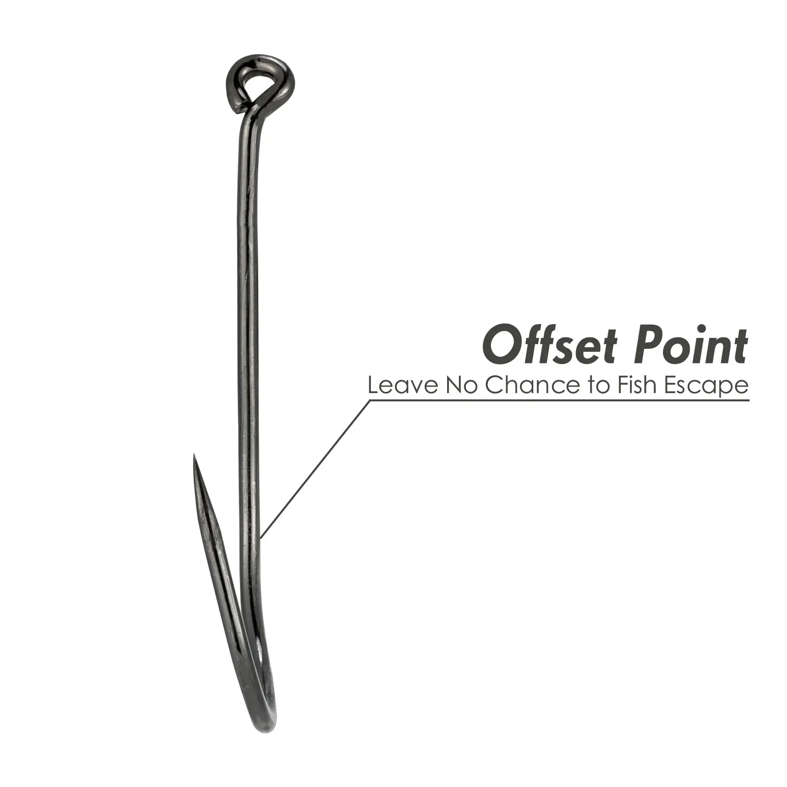Este gancho de pulpo presenta un punto de pico curvado y ligeramente desplazado para una mayor ración de gancho. Se pone la esquina de la boca del pez con más frecuencia que los anzuelos J.
