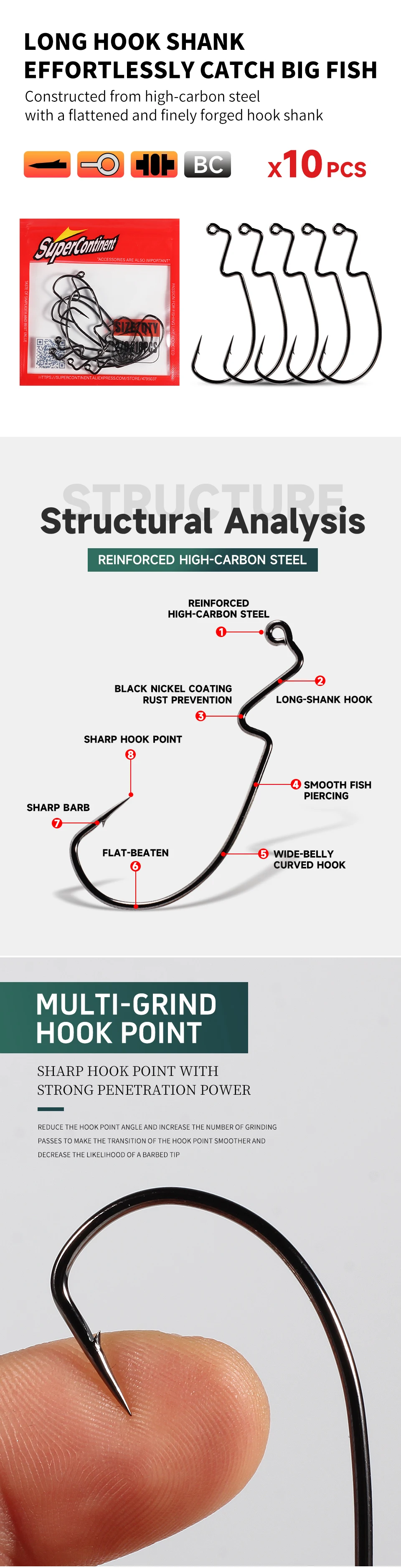 Anzuelo supercontinent multioffset para lubina, acero rico en carbono, 10 Uds., anzuelo de pesca, Señuelos de Pesca de carpa marina