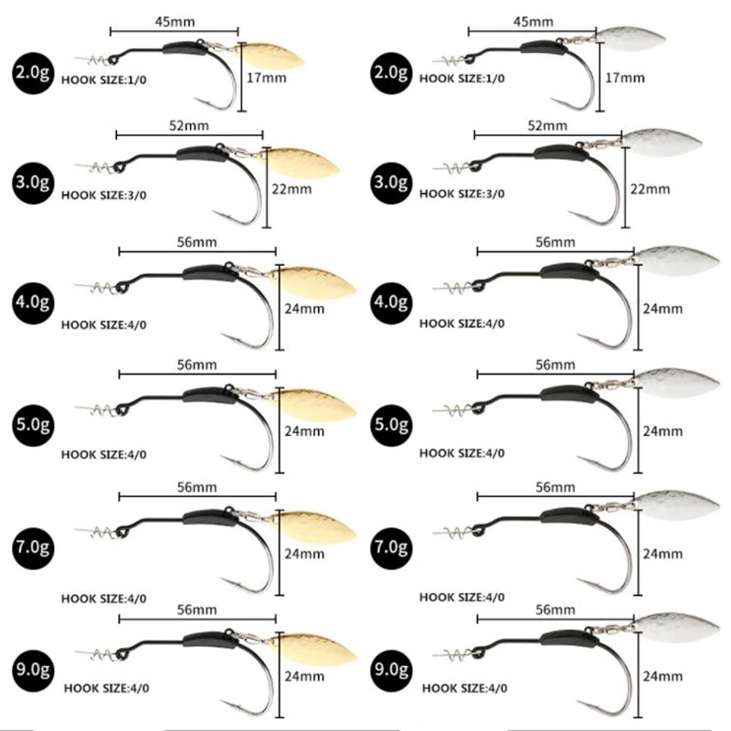 Anzuelo Swimbait con hoja de sauce, anzuelos de manivela con peso, 2g-9g, lote de 3 unidades