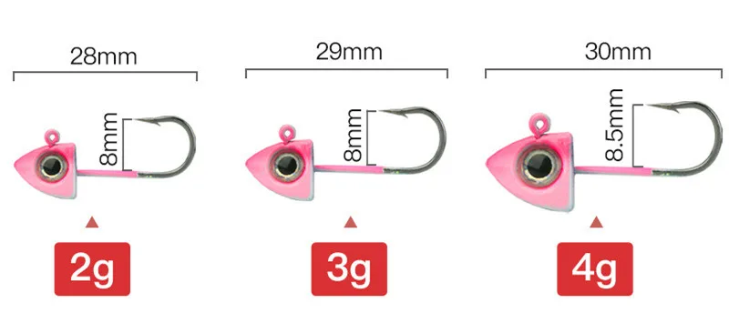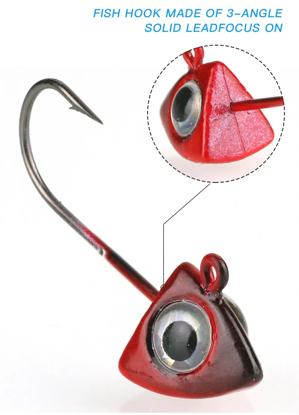 Anzuelo triangular de cabeza plomada, señuelo de gusano, cebo blando, anzuelo individual, 2g, 3g, 4g, lote de 3 piezas