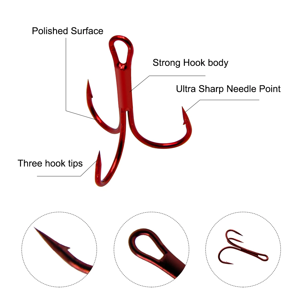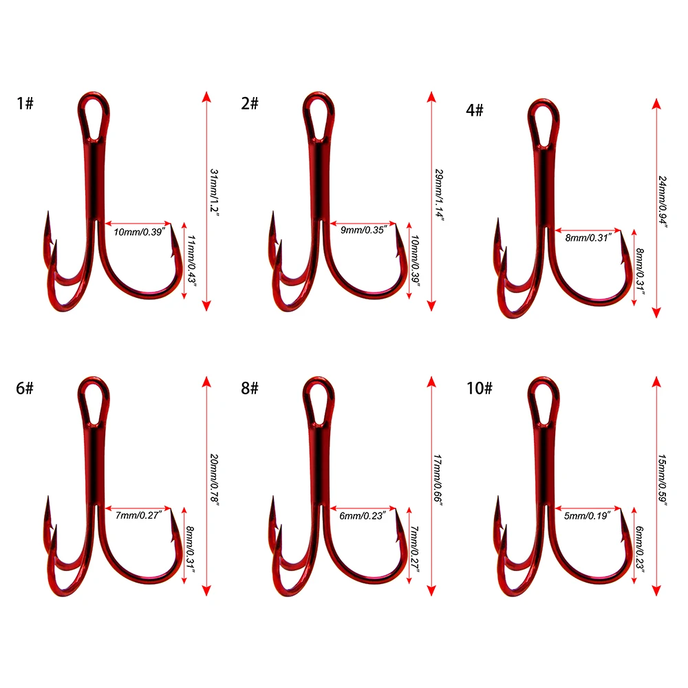 Anzuelo triple de 20 piezas para pesca de agua salada, anzuelo de acero de alto carbono, de alta resistencia, para lubina, volteada, afilada, #10-#8