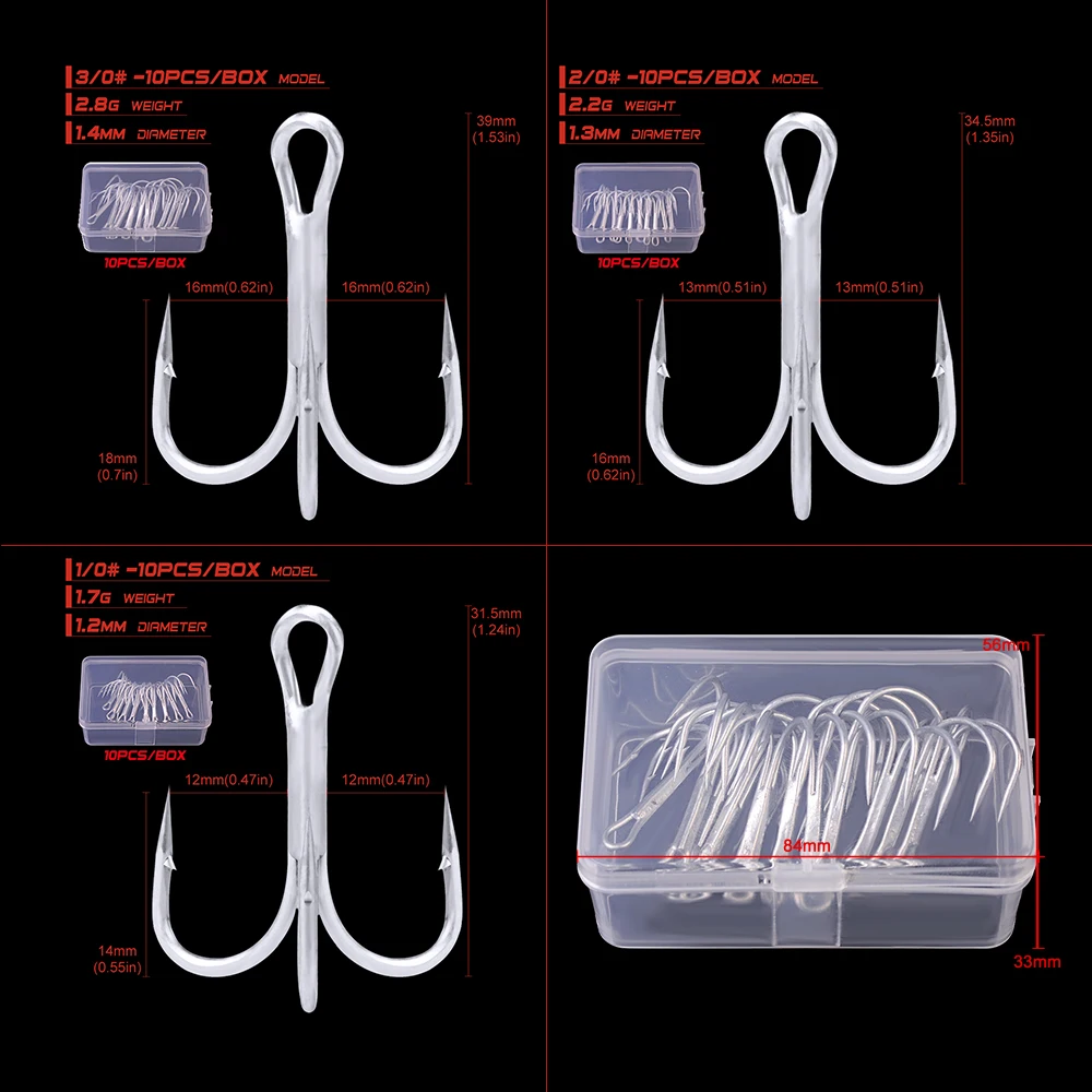 Anzuelo triple de acero al carbono para pesca, anzuelo de pesca de Color blanco, anzuelo triple, anzuelo antioxidante, 1/0 #2/0 #3/0 #, 10 unids/caja