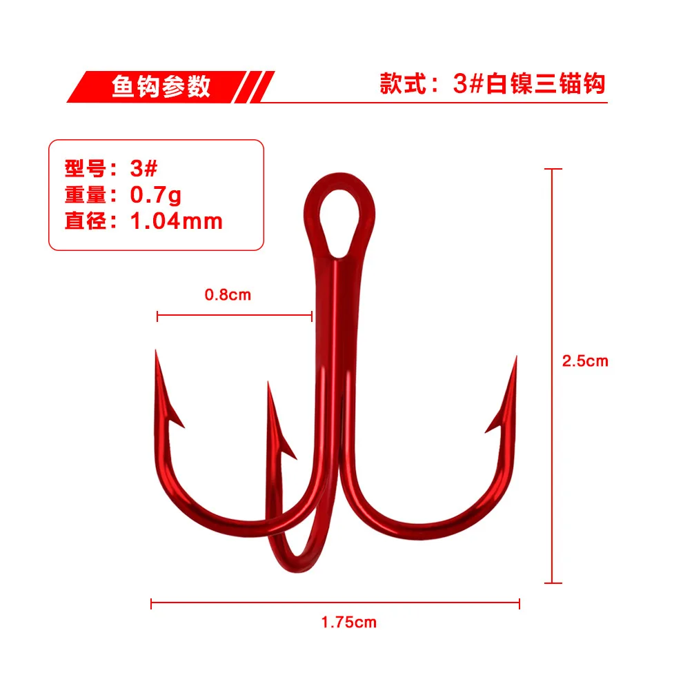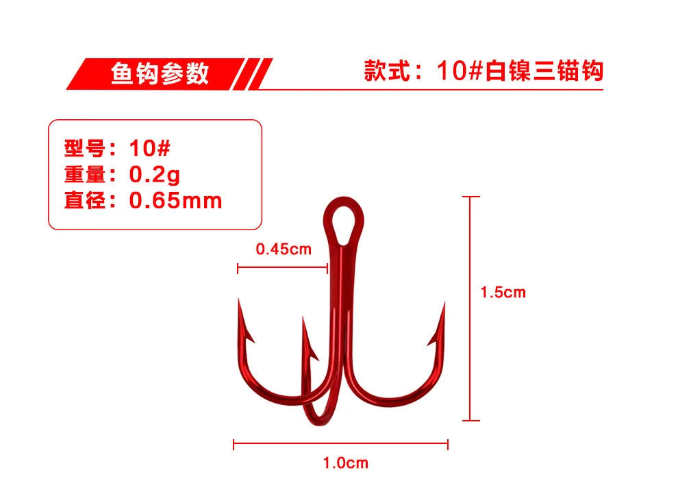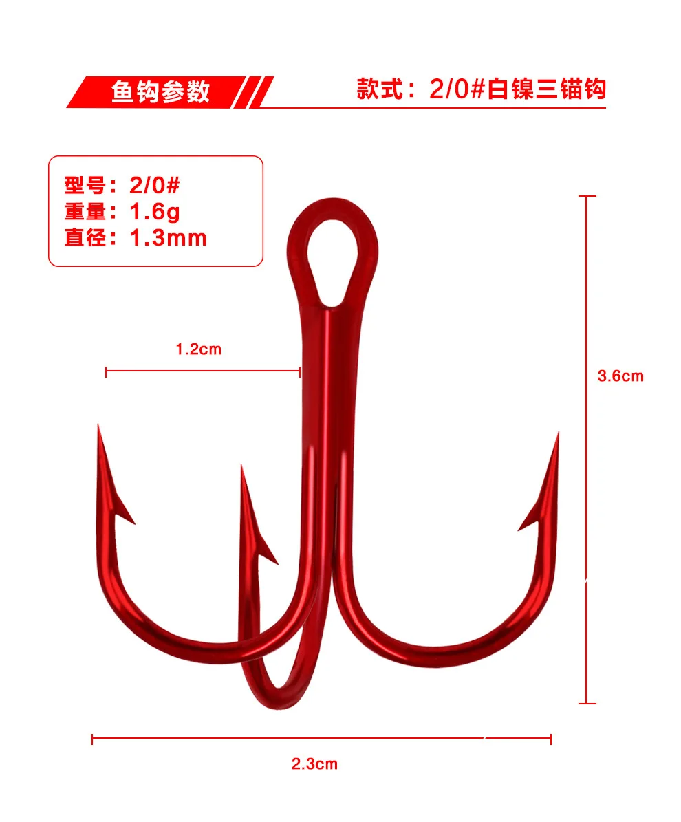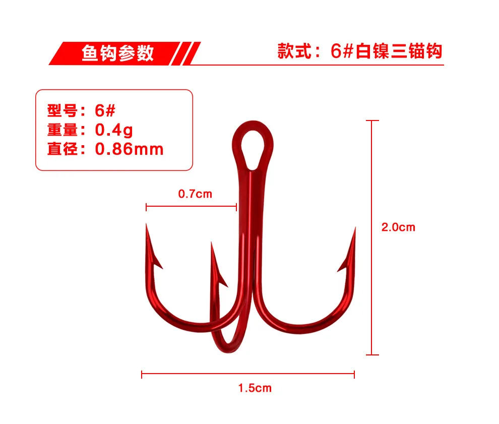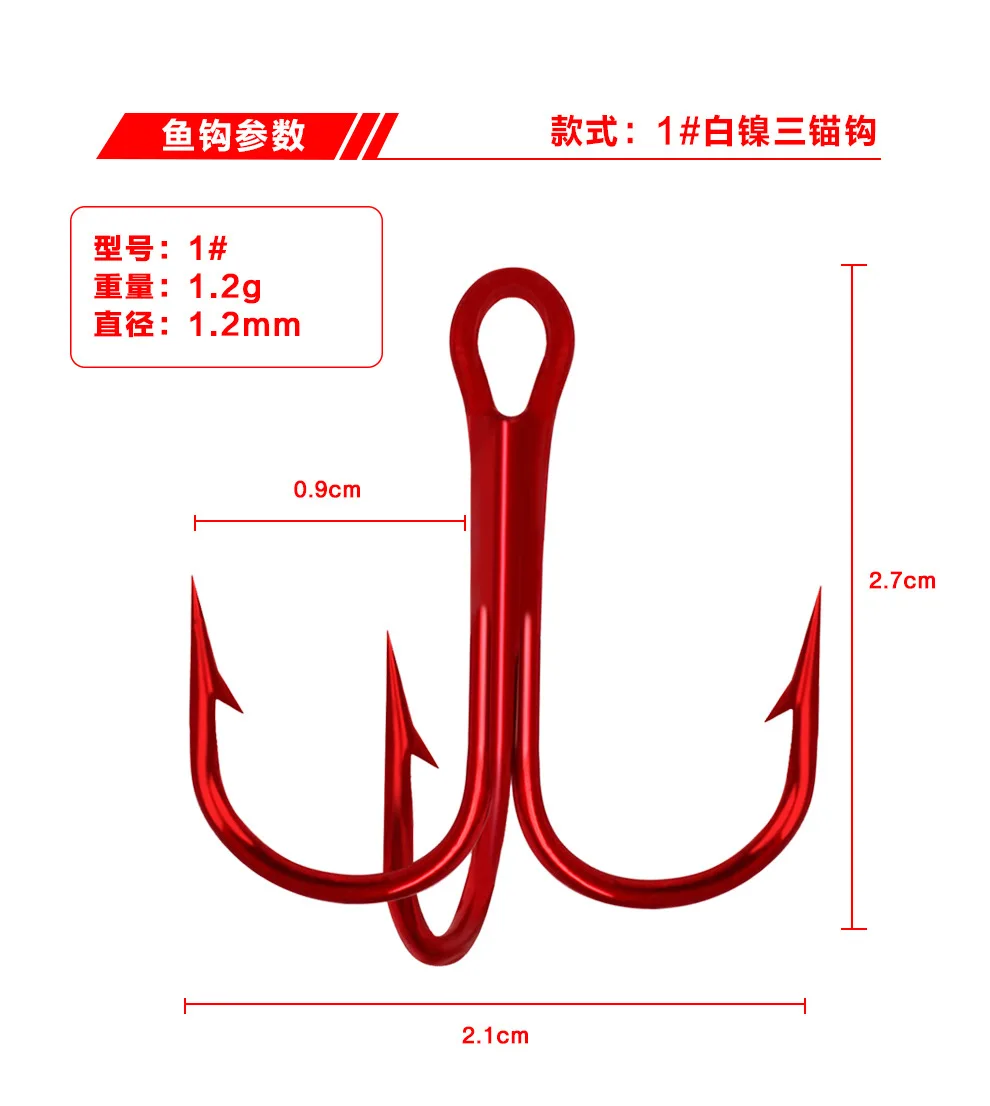 Los tamaños de los anzuelos son buenos, el color combina bien con los señuelos (rojo). Desventaja: anzuelos sin filo, necesitan afilarse y ajustarse. Esperaremos antes de hacer otra compra... Aunque pensé en pedir más. Gracias por el embalaje y la entrega. ¡Buena suerte a todos!