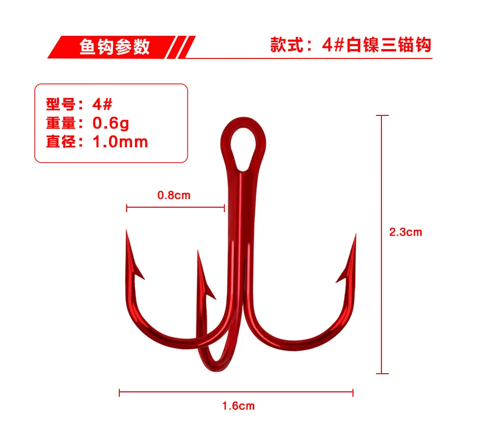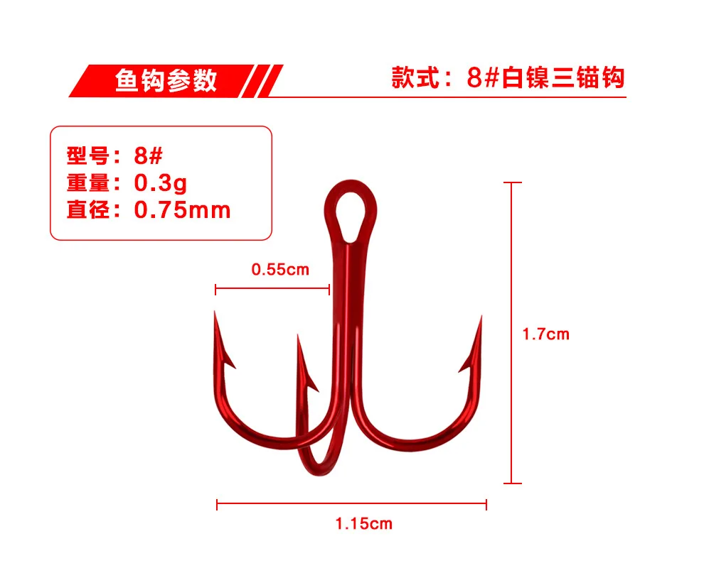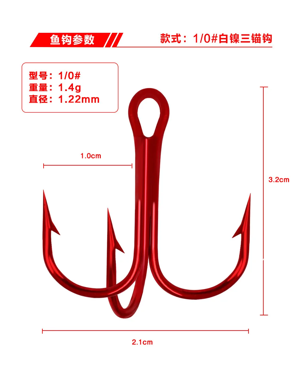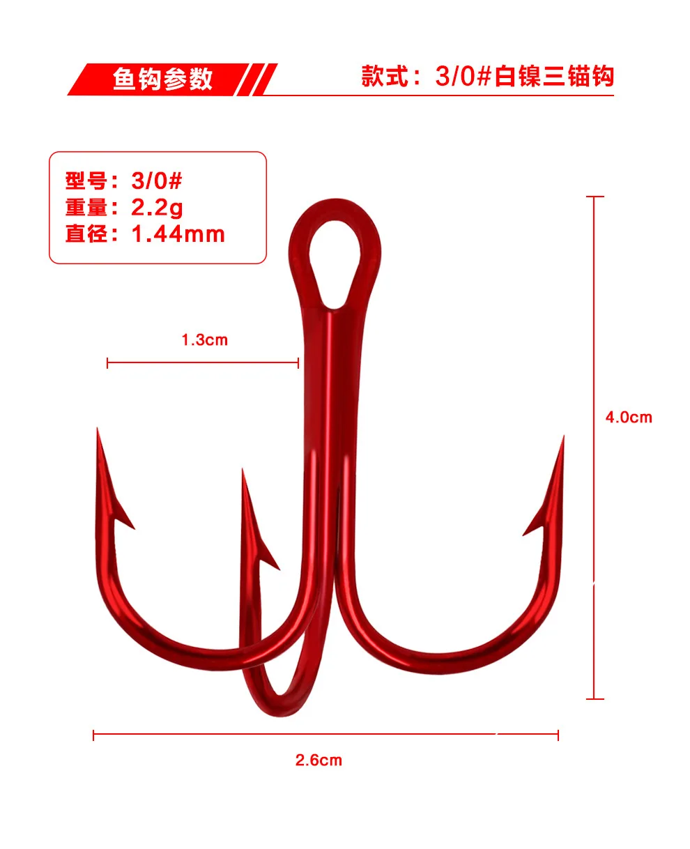 Los tamaños de los anzuelos son buenos, el color combina bien con los señuelos (rojo). Desventaja: anzuelos sin filo, necesitan afilarse y ajustarse. Esperaremos antes de hacer otra compra... Aunque pensé en pedir más. Gracias por el embalaje y la entrega. ¡Buena suerte a todos!