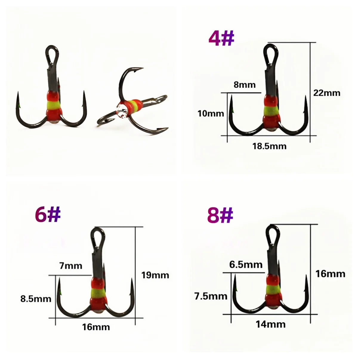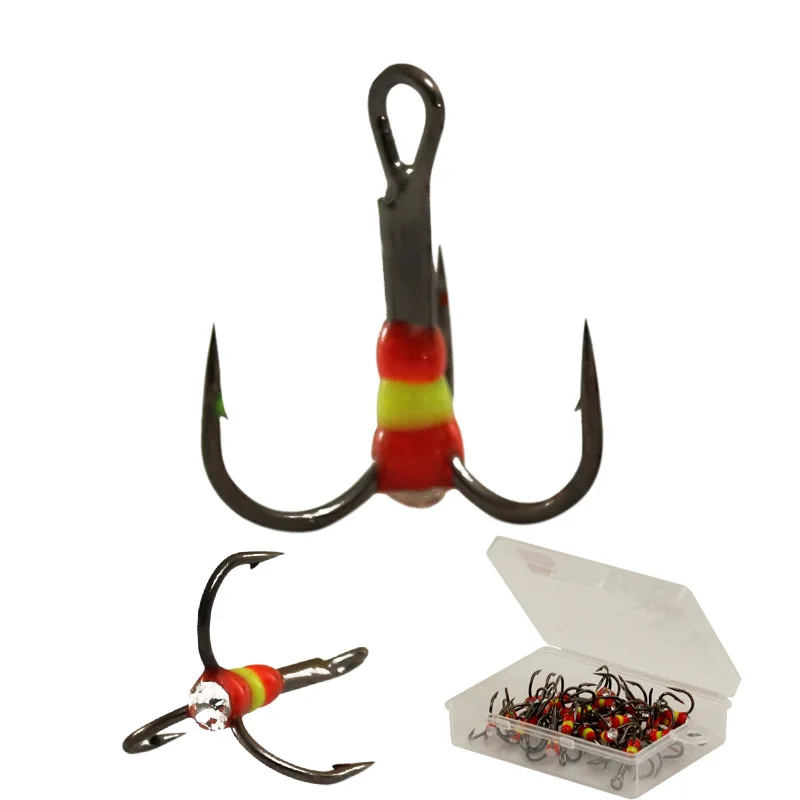 Anzuelo triple de pesca, anzuelo de hielo de colores, 10 Uds.